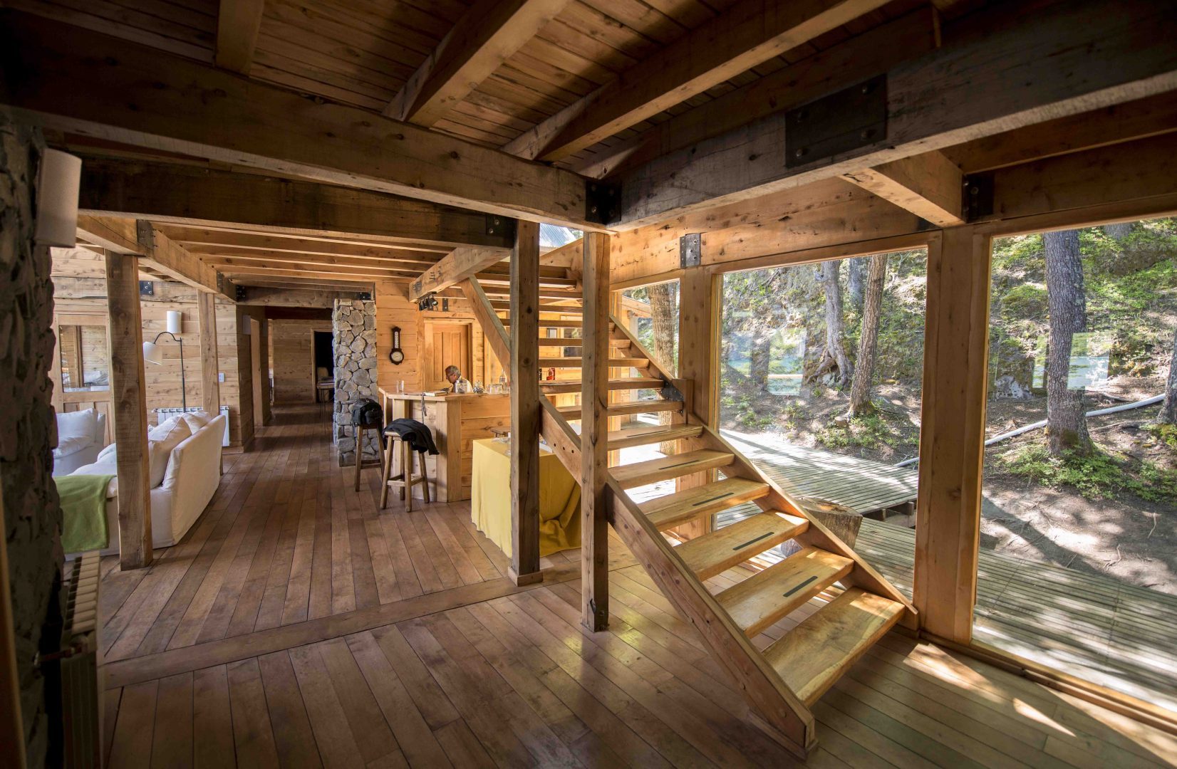 Aguas Arriba Lodge sits near the Lago del Desierto in Argentine Patagonia, 20 miles from El Chalten. Its six rooms provide majestic views of the lake, the north face of Mount Fitzroy, Mount Torre, and the Vespignani Glacier. The lodge is part of the Estancia Rio de las Vueltas, a property with 700 hectares of mountain and 900 meters of shore line, covered with centenarian trees from the Nothfagus species. In the dining area, you'll feast upon fresh produce from the garden.