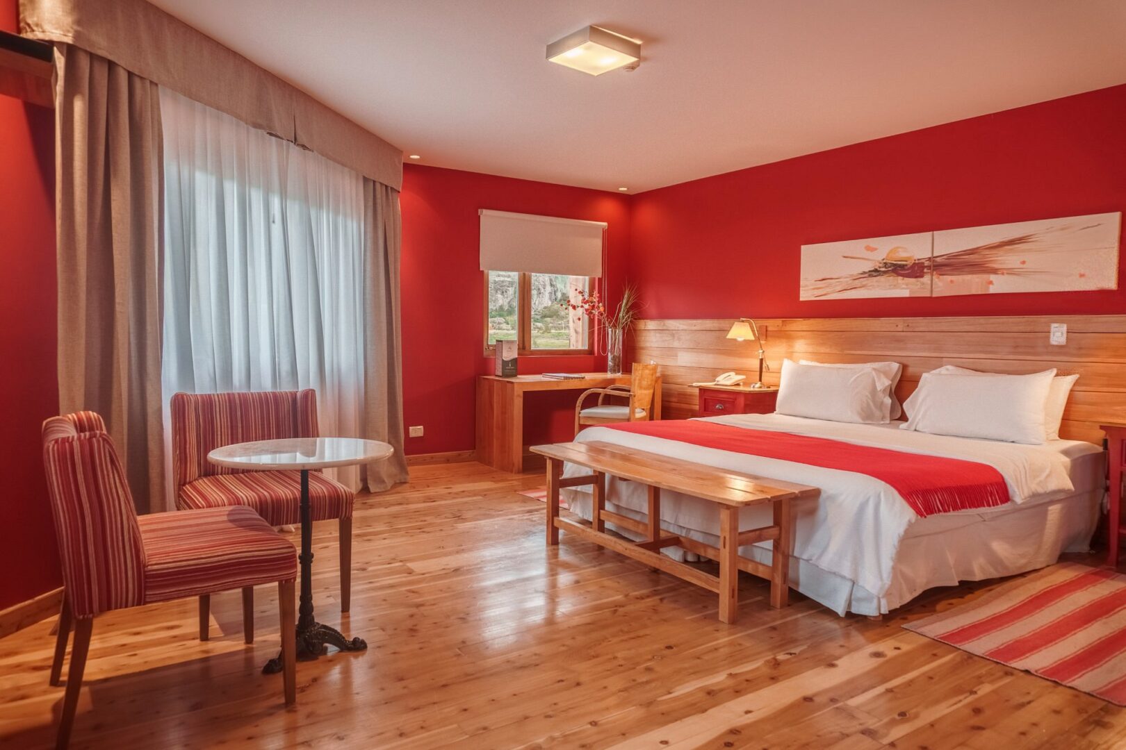 Hotel Destino Sur is located in the village of El Chaltén in Argentine Patagonia. Facilities include a restaurant, a cozy bar and lounge with fireplaces, and a wellness area with an indoor swimming pool, sauna, spa, and mini-gym. The hotel’s design and location provide a comfortable base within walking distance of El Chaltén’s village center, hiking trails, and mountain scenery.
