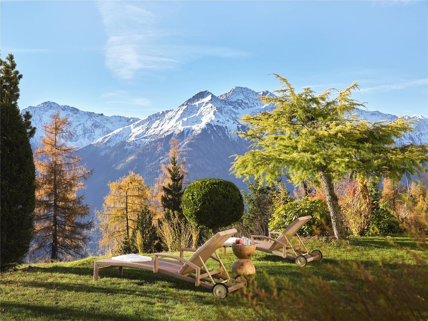 Interalpen-Hotel Tyrol is a 5-star luxury resort set on 75 acres of parkland above Seefeld in Tirol with panoramic views of the surrounding Alps. Guest rooms and suites feature classic alpine-elegant interiors with many offering balconies or terraces, and several restaurants and bars serve regional and international cuisine, including fine-dining options. Facilities include a large spa with multiple indoor and outdoor swimming pools, steam bath, saunas, infrared cabin, treatment rooms, and a gym, plus golf facilities, tennis courts, a yoga studio, and direct access to hiking trails.