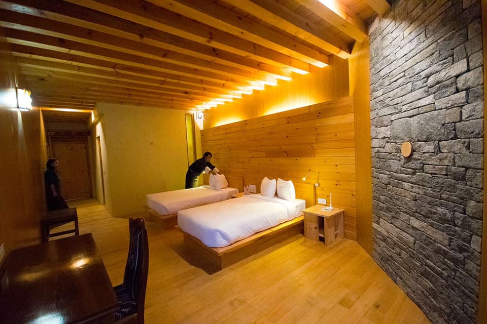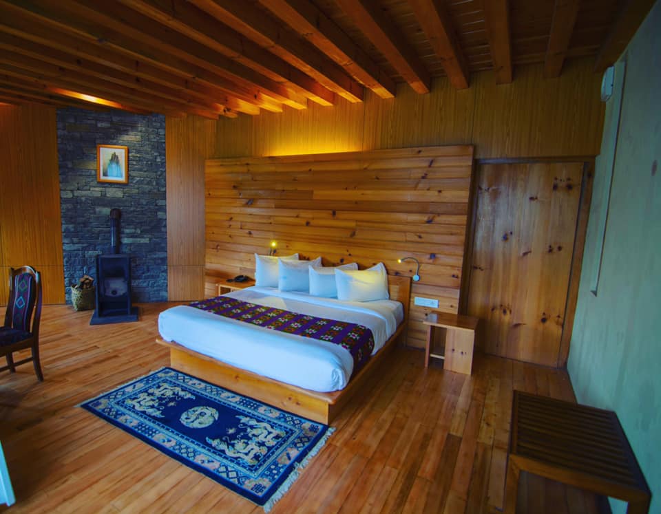 Set in the heart of Bumthang’s tranquil Chokhor Valley, Bhutan Mountain Resort offers a peaceful retreat surrounded by pine forests, monasteries, and traditional villages. Rooms are simple yet comfortable, featuring wood accents and large windows that frame views of the valley and mountains. Guests can relax in the gardens, sample Bhutanese and international dishes in the restaurant, and take advantage of the resort’s convenient location for exploring Jakar Dzong, Kurjey Lhakhang, and the many sacred sites that make Bumthang the spiritual center of Bhutan.