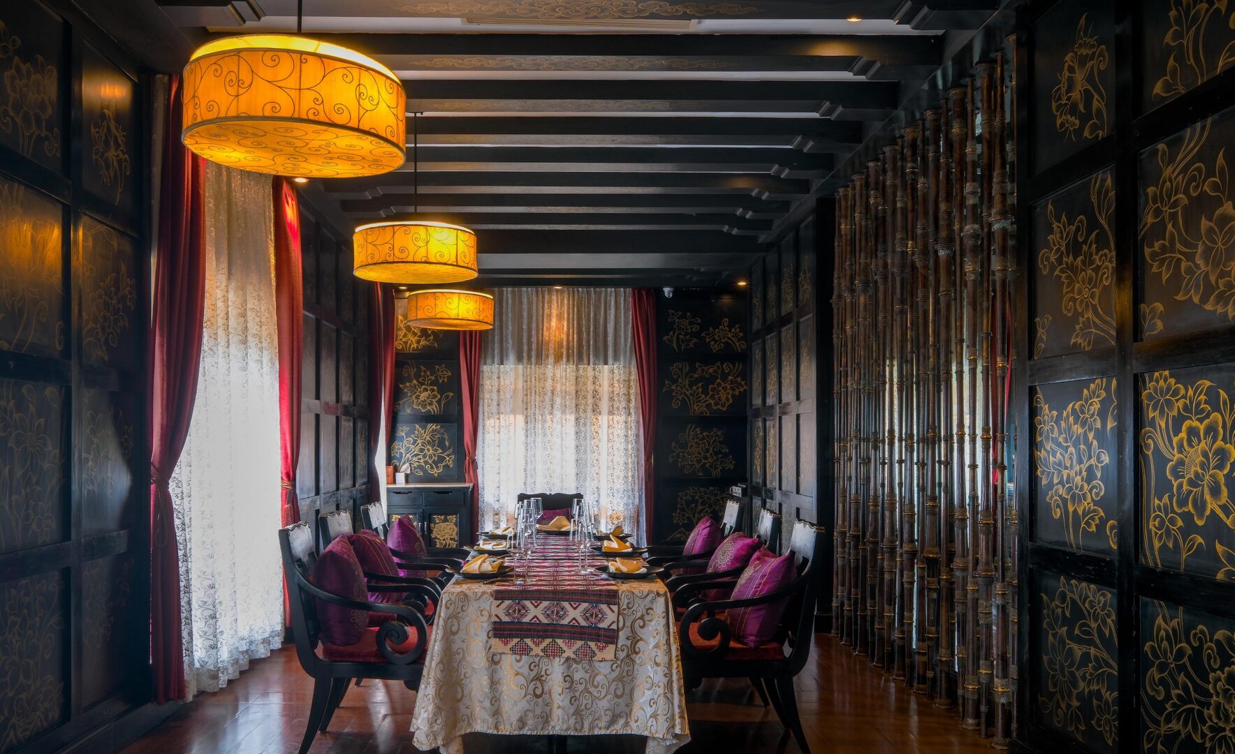 Pemako Thimphu is a centrally located luxury hotel in the middle of Bhutan's capital city. Its 66 rooms are adorned with traditional art and hand-drawn murals, and have amenities such as WiFi, warm wooden accents, and views over the city and mountains. The hotel's restaurants feature both International and Bhutanese cuisine, and guests can enjoy both a cocktail and tea bar. There's also a Bhutanese spa, a gym,