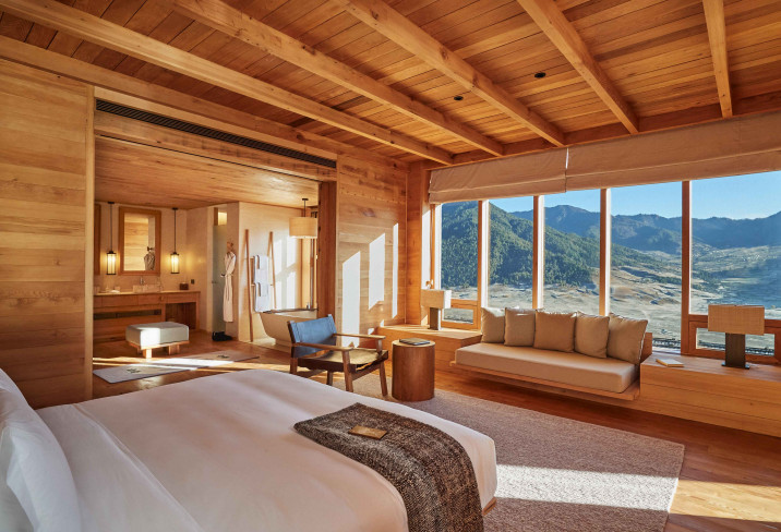 Perched on a forested ridge overlooking Bhutan’s serene Phobjikha Valley, Six Senses Gangtey offers sweeping views of meadows where black-necked cranes gather each winter. With just a handful of suites and villas, the lodge is designed to maximize the valley vistas through floor-to-ceiling windows and private decks, while interiors feature natural stone, warm woods, and Bhutanese textiles. Guests can enjoy guided walks through the valley, restorative treatments at the spa, or evenings by the fire after dining on seasonal dishes prepared with local ingredients.