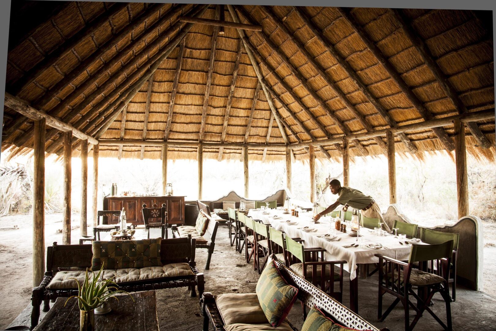 Just one of only three camps in a one million-acre private wildlife reserve, Camp Kalahari has 12, Meru-style tents set amongst the palms. There’s a veritable blockbuster of activities to get stuck into, including quad biking, horseback riding, bushman walks and traditional game drives. Enjoy lazy siestas in the swimming pool pavilion and, in the dry season, watch the Elephants come to drink at the water – a memory you won’t forget in a hurry!