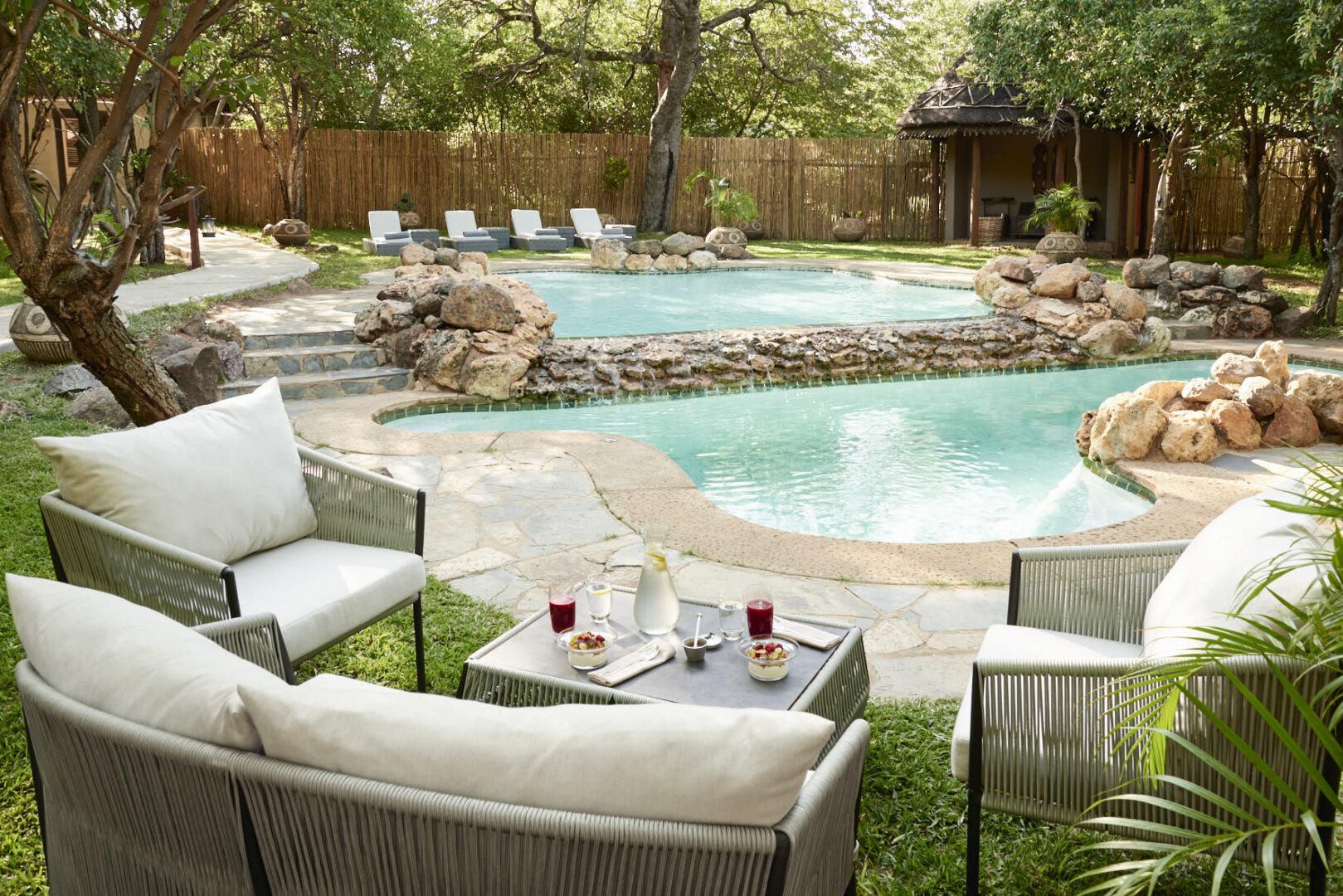 Each of Chobe Chilwero’s fourteen spacious, air-conditioned suites has an impressive view and a private garden – the perfect spot to sip cocktails or enjoy a private dinner served under the African sky. Each ensuite offers a free standing bath tub and an indoor and outdoor shower.