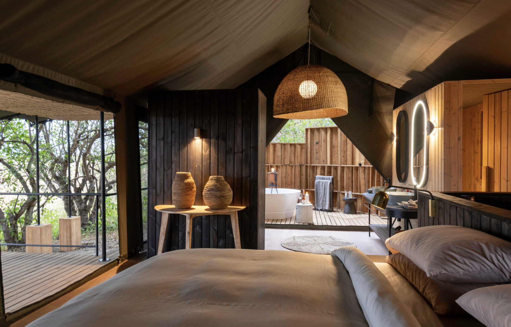 Kiri Camp offers a combination of both game drives and water activities (water & flood dependent). Based on a private concession, these activities will take you to some of the more remote areas in the delta, previously inaccessible. Each of the eco-luxury tents are positioned on elevated decks on the side of a slope, offering guests privacy and peak game viewing right from their tent. These designer tents have all the amenities needed for a comfortable stay, with fine details such as high-end toiletries. Enjoy incredible views, fine dining, and elegant lounge spaces with rustic charm.