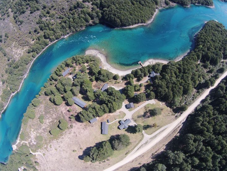 Located on the banks of the Baker River, the Green Baker Lodge is composed of seven cabins, each with a river-view terrace.
