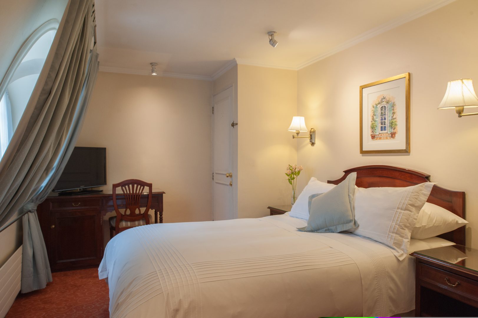 Hotel Orly enjoys a convenient location in the middle of Providencia, a nice area of Santiago. Its interior boasts wood floors, country-manor furnishings, and a glass-domed breakfast room. The hotel owns Cafetto, the downstairs cafe, known for its top-quality coffee drinks.