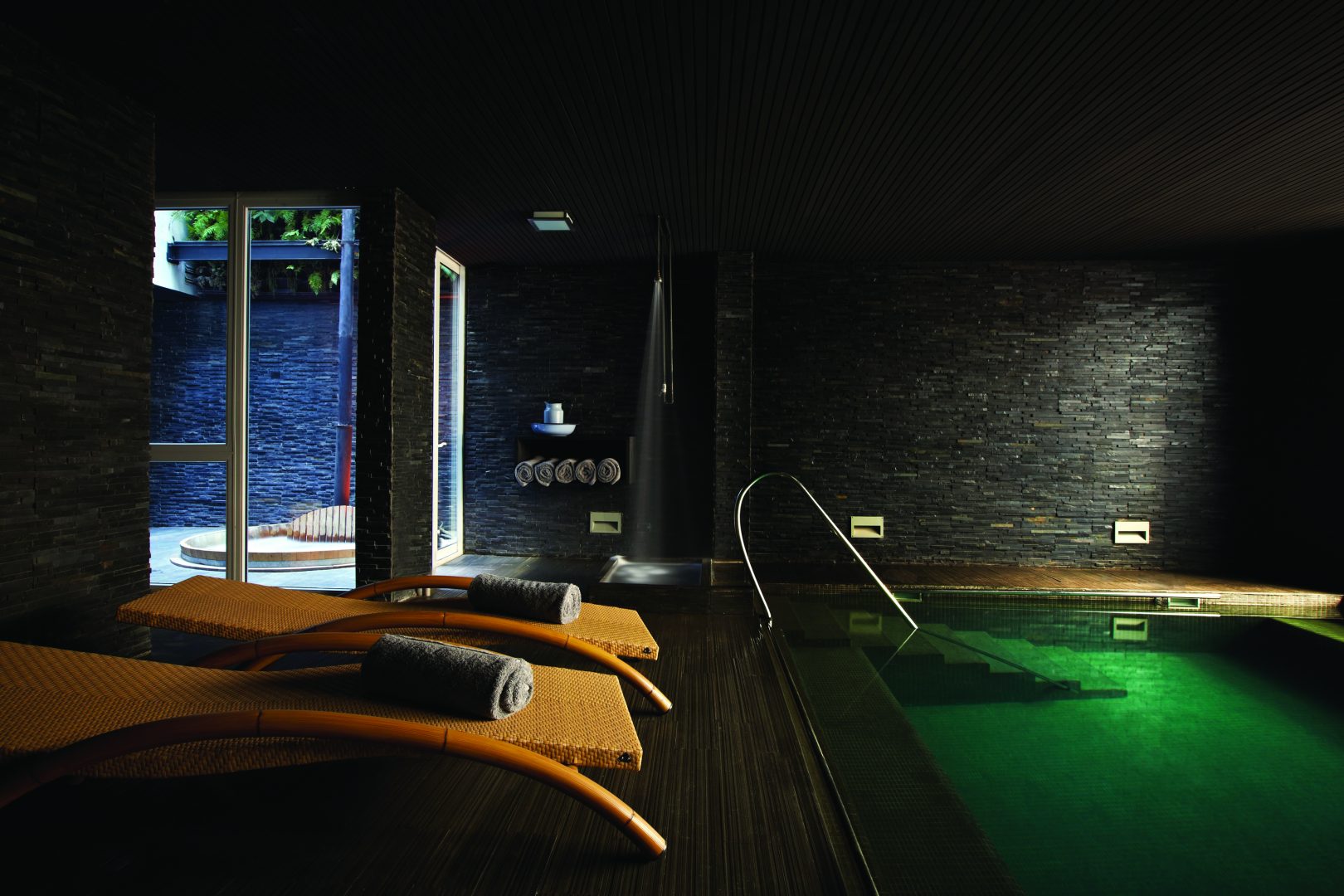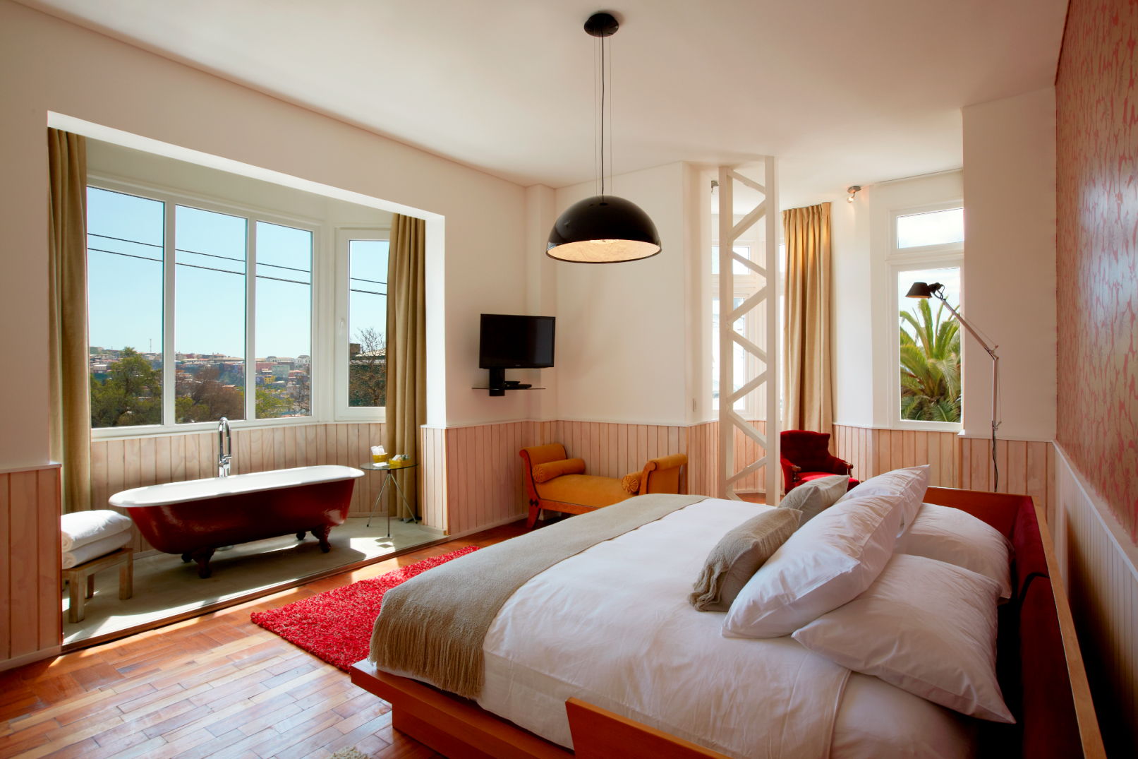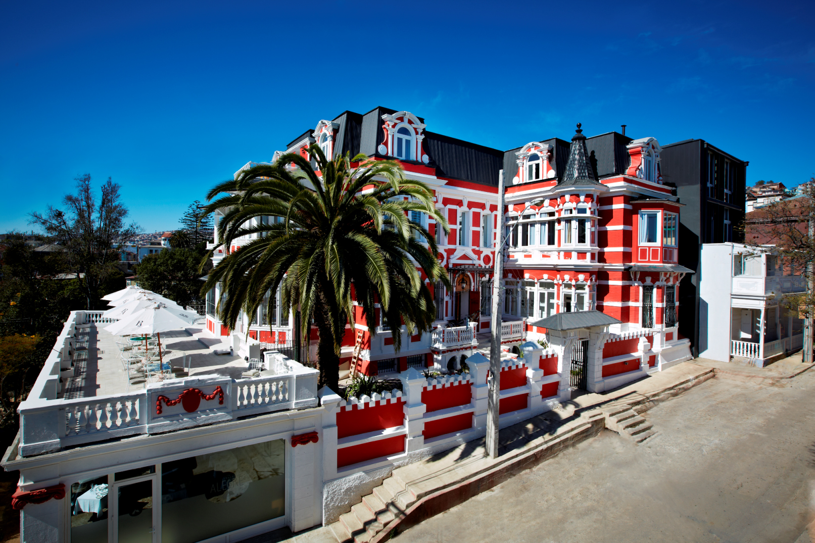 A renovated 1920s-era mansion houses the Palacio Astoreca Hotel in Valparaiso, Chile. The hotel offers 23 guest rooms, a restaurant, underground wine cellar, library, piano bar, spa with a steam bath, heated indoor pool, and an indoor wood-burning hot tub. It sits within the historical city center of Valparaiso. The famous “Paseo Yugoslavo” and the Fine Arts Museum and the Barburizza Palace lie within walking distance.