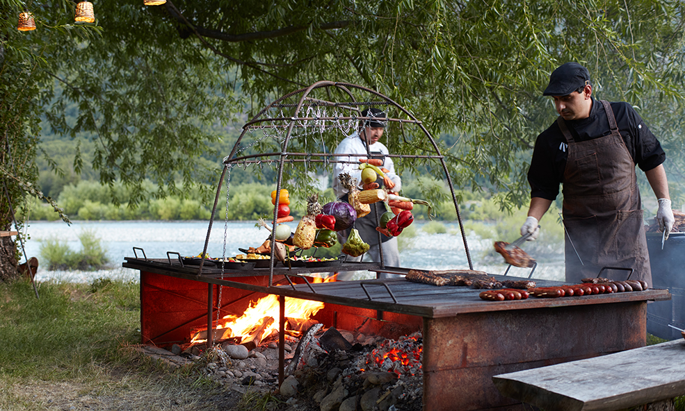 In the evenings, find solace on the deck overlooking the tranquil river, or indulge in the rejuvenating embrace of the wood-fired hot tubs and a sauna. For dinner, savor meticulously plated dishes by a private chef in the cozy dining room – from exquisite beef and homemade pastas to grilled salmon and locally-sourced produce paired with fine Chilean wines.