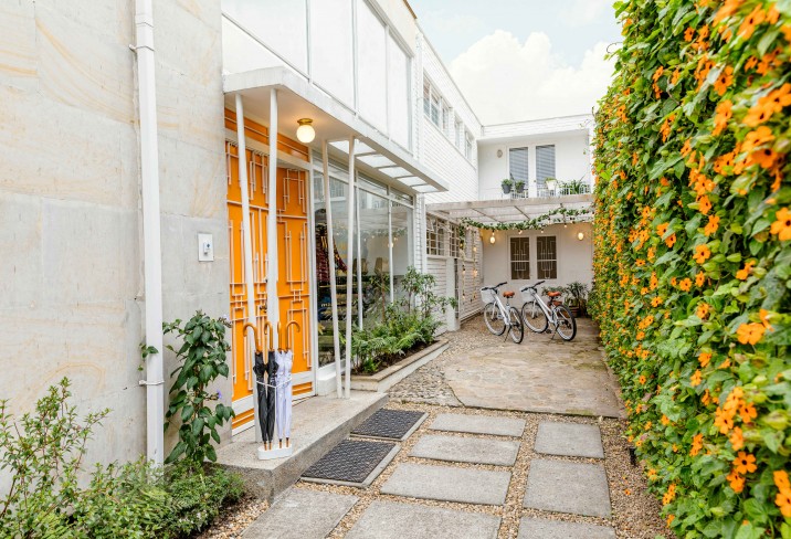 This boutique hotel is located in the Quinta Camacho neighborhood, within walking distance of restaurants, cafés, galleries and shops. Each of the seven rooms is uniquely decorated with comfortable vintage furnishings. The hotel has an open kitchen, garden, rooftop patio, and fireplace.