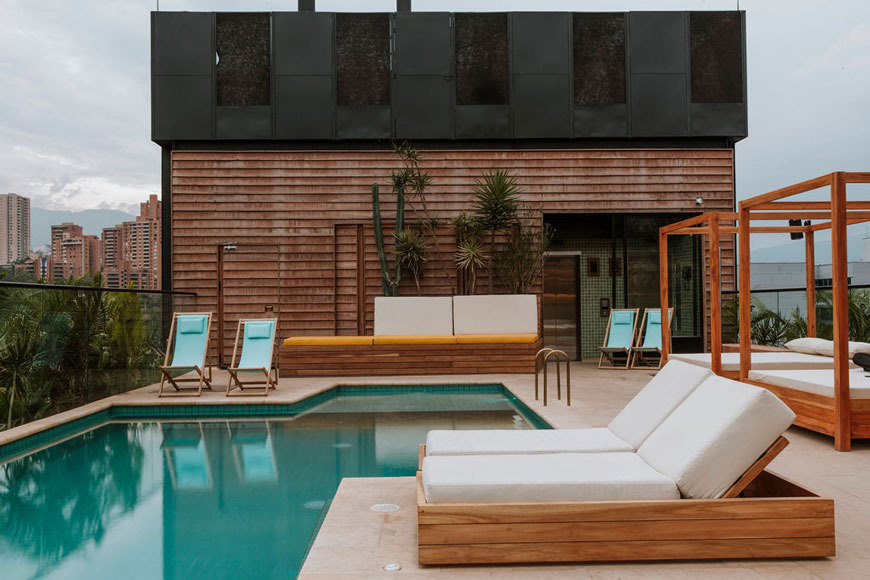 Click Clack Medellín sits in the heart of Provenza, the city’s trendiest and most walkable area filled with restaurants, shops, and bars, surrounded by green and close to both airports. The outdoor green lobby area houses an art gallery, shops, cafés, and restaurants, including wholesome comfort food at the Click Clack Kitchen. Up above, a sprawling rooftop area featuring not one, but two bars and a pool makes the most of the stunning views over the Aburra Valley.