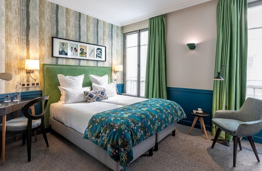 Located in a quiet neighborhood in the 9th arrondissement, the Hôtel Adèle & Jules is a charming gem of a hotel and a great base for exploring Paris. The hotel offers 60 rooms spread across two neighboring buildings, each decorated to feel like a Parisian pied-a-terre, with warm colors and local decor. A perfect mix of chic and cozy!