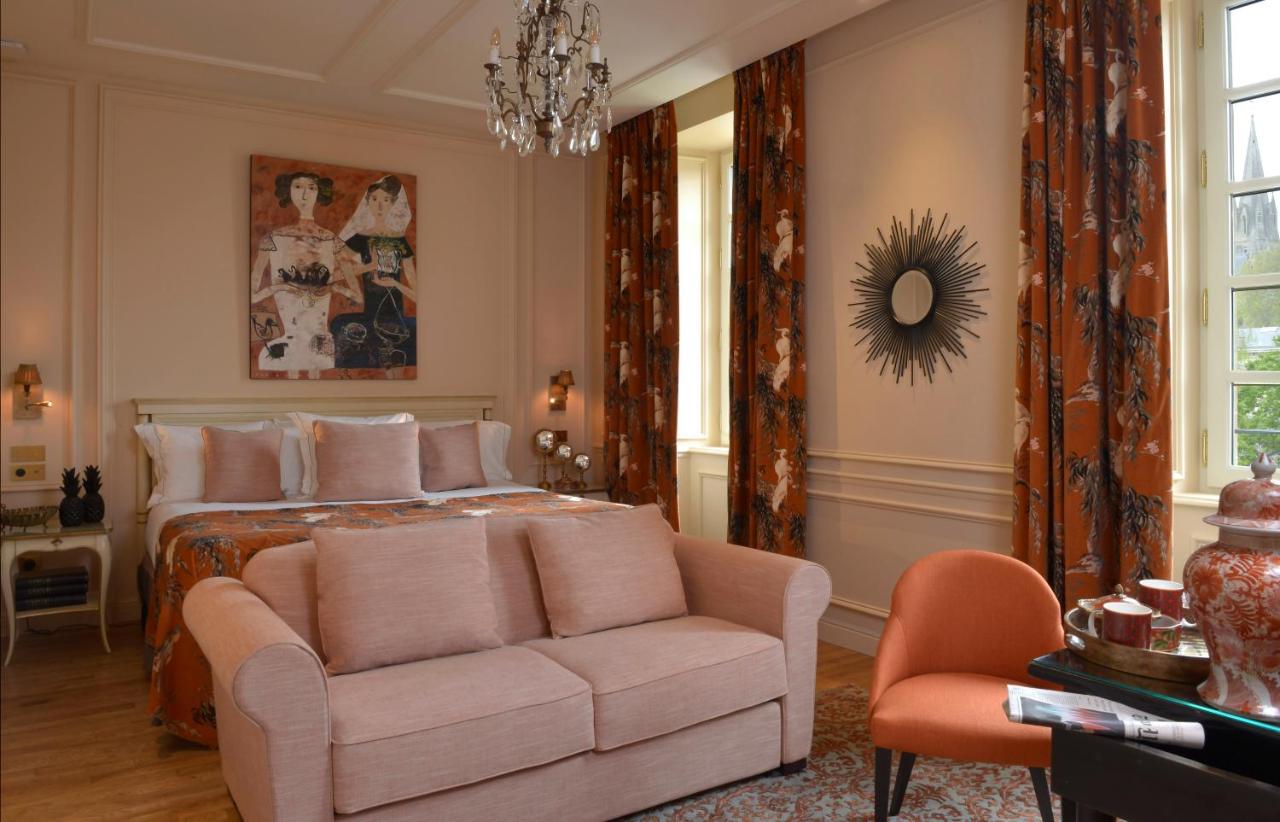 Located in the heart of Bayeux's city center, this 28 room luxury boutique hotel is the perfect base for exploring the historic and medieval region of Normandy. The rooms are spacious and colorful and most have views over the neighboring 11th century cathedral. The overall vibe is subdued luxury with a cozy atmosphere and a twist of French elegance.