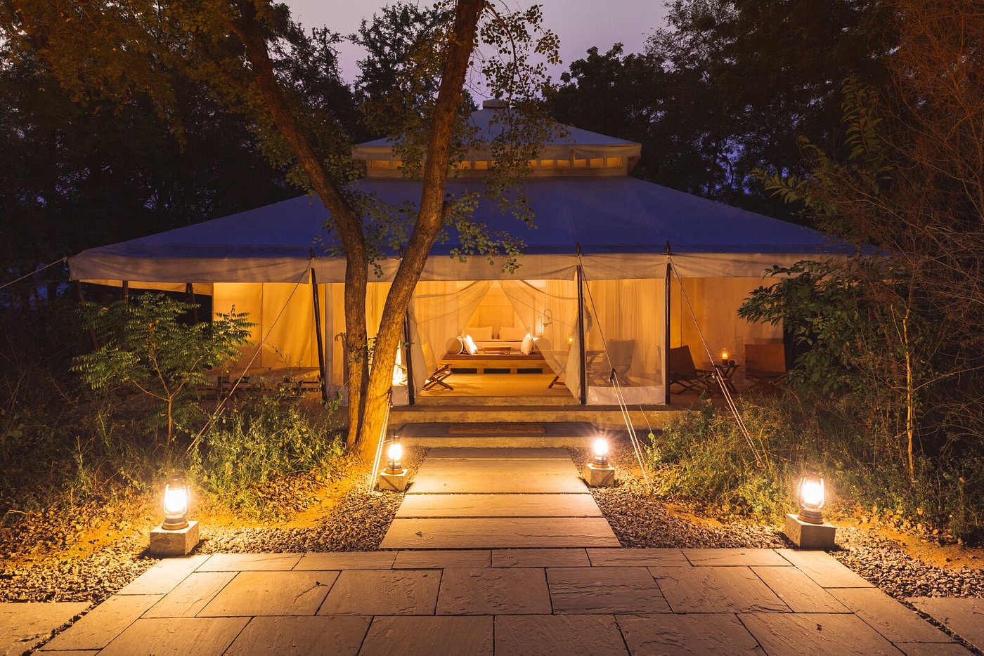 Situated on the threshold of the reserve, this intimate tented camp offers incomparable privacy and daily safaris seeking out the reserve’s wildlife. Aman-i-Khas offers spa therapies, swimming in a beautiful stone pool, and thoughtfully curated menus. The camp’s ten expansive and luxurious tents overlook a ruggedly beautiful landscape that is home to abundant wildlife. Positioned to ensure utmost privacy, the Tents offer soaring living spaces decorated with classic furnishings. The light-filled bathing area features a free-standing bathtub and shower, while the living room has twin writing desks.