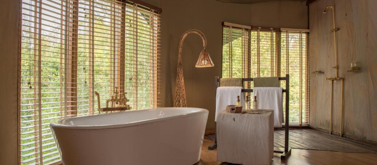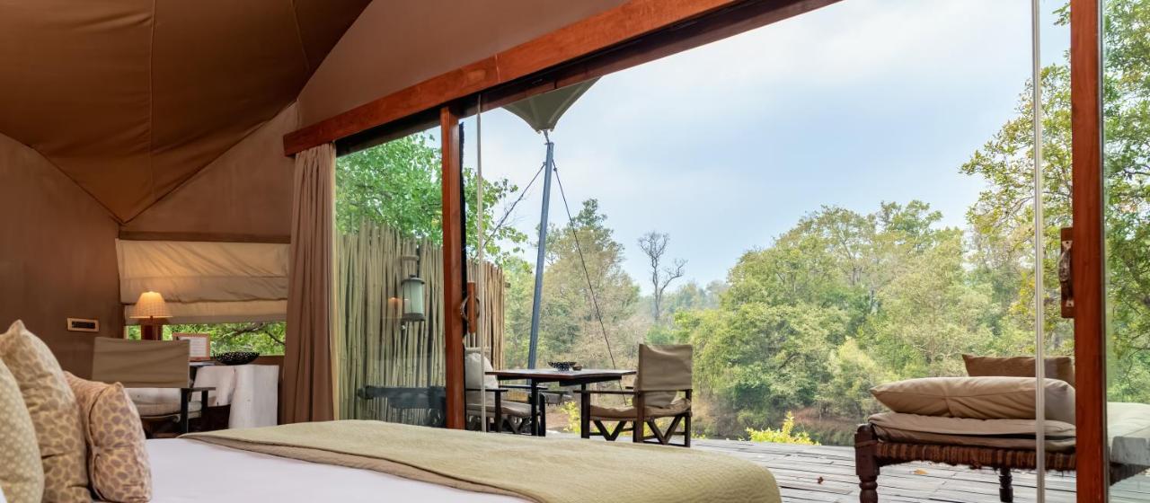 Set on lush grounds along the Banjar River, this rustic-chic hotel looks into Kanha National Park. Set on stilts and featuring bamboo furnishings, the understated permanent tents have complimentary Wi-Fi, safes and minibars, as well as living areas, yoga mats, free-standing baths and handcrafted furniture. All provide balconies; some add views of the river or the national park. Room service is offered 24/7. Other amenities consist of outdoor pools, lounges and open-air dining areas. Spa treatments are available.