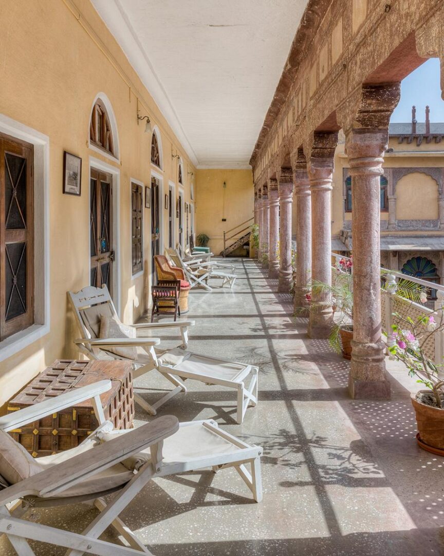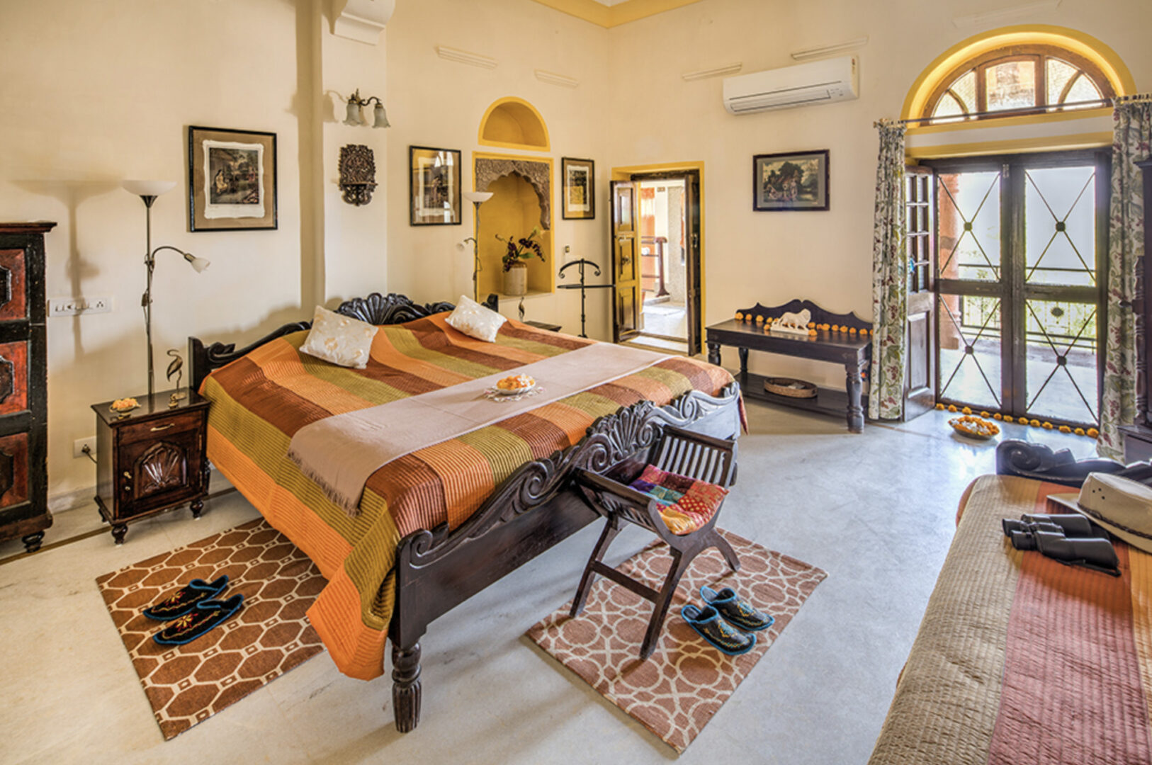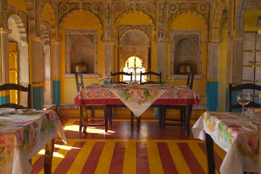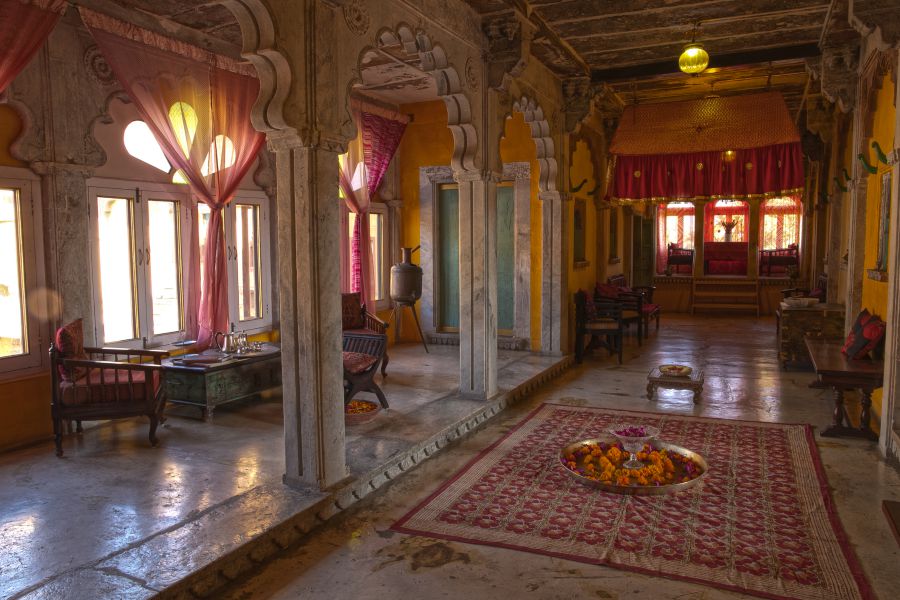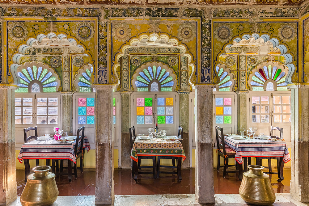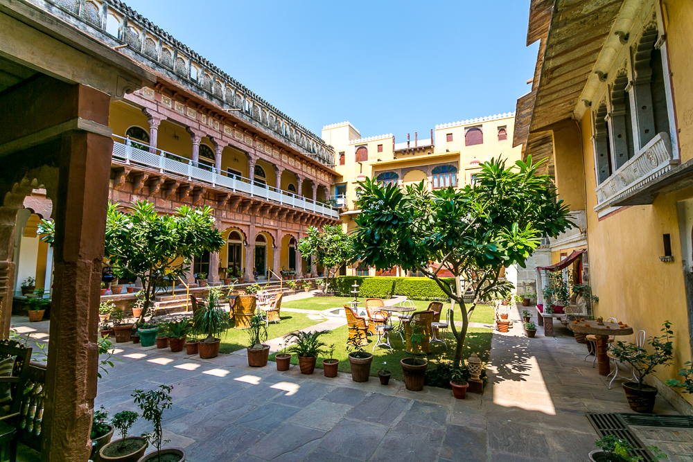 Chanoud Garh is a beautiful 4-star hotel set in a 300-year-old fort, and still managed by descendants of the same family from the 13th century. Modern amenities such as fine Rajasthani cuisine, air-conditioning, Wifi, and rooms outfitted with luxurious toiletries and linens are complimented with antique furnishings and original centuries-old murals and paintings. The peaceful gardens and rooftop terrace offer respite from the chaos of India's bustling cities.