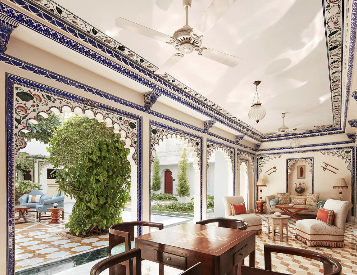 A jewel floating in the middle of Lake Pichola, Taj Lake Palace is a building made of marble locally sourced from Rajnagar. Architecture influenced from Mughals, predominantly lead by Mewari techniques, this heritage hotel in Udaipur has 65 luxurious rooms and 18 grand suites. Restored to its pristine glory, this spectacular palace became world renowned when the James Bond film ‘Octopussy’ was filmed at it.