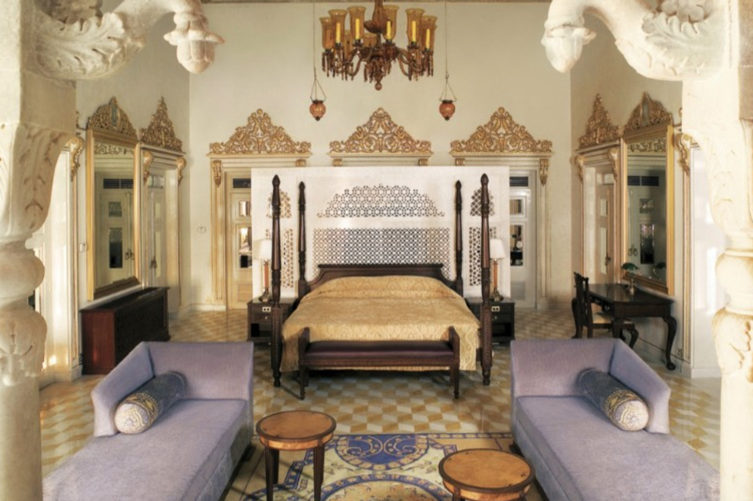 Its location on an island in the midst of a lake affords every room breathtaking views of the neighboring City Palace, Aravalli Hills, Machla Magra Hills, and Jag Mandir. The incomparable location provides the perfect backdrop for the exquisite cuisines at the elegant restaurants of Taj Lake Palace open only to resident guests.