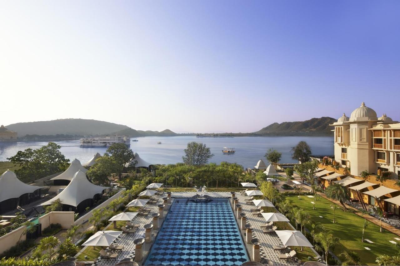 Perched on the banks of the serene Lake Pichola, The Leela Palace Udaipur exemplifies Rajasthani architecture and evokes the grandeur of Udaipur's rich and royal heritage. Its unparalleled opulence is an ode to the Land of the Mewars using traditional artisanal crafts. Decorated with warm shades of golds and reds, the rooms feature local artwork and fine Indian carpets. They come with a flat-screen TV, Wifi, air-conditioning, and other fine amenities. Marble bathrooms have a bathtub and premium toiletries. Surrounded by loungers, the large outdoor pool has an attached hot tub. Alternatively, enjoy quiet moments at the peaceful Library Bar, or having dinner overlooking the spectacular view.