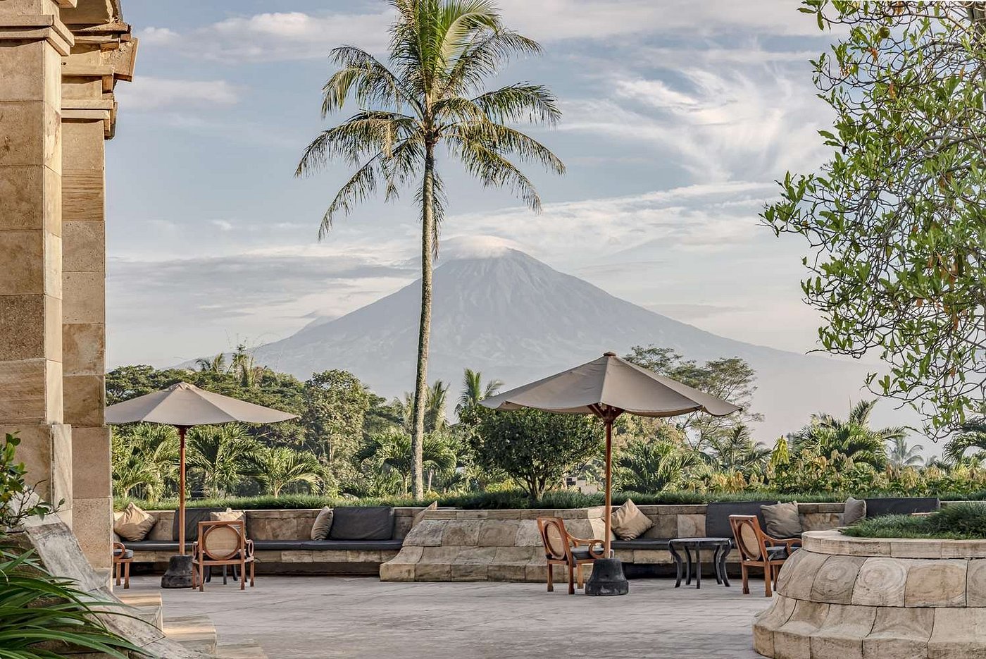 Amanjiwo rests in a natural amphitheater of limestone hills, overlooking the UNESCO World Heritage Site of Borobudur. Built from local limestone, the resort evokes the grandeur of a Javanese temple, with sweeping colonnades, soaring domes, and serene pavilions that open to private gardens or pools. Interiors feature terrazzo floors, thatched ceilings, and hand-carved furnishings, while the restaurant showcases Indonesian flavors with panoramic views of the Kedu Plain. Guests can wander through nearby villages, explore Borobudur at sunrise, or retreat to the spa and infinity pool for moments of deep tranquility.