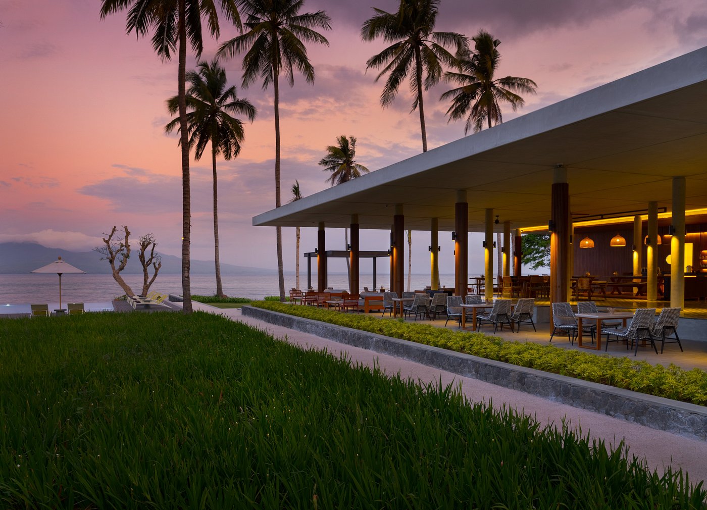 Dialoog Banyuwangi is a sleek, contemporary beachfront hotel overlooking the Bali Strait, designed with minimalist architecture and open spaces that blend sea and nature. Rooms feature floor-to-ceiling windows, private terraces, and rain showers, many with direct ocean views. The property offers a beachfront infinity pool, a spa with locally inspired treatments, and a restaurant serving modern Indonesian and international cuisine. Additional amenities include a fitness center, bar, and curated experiences such as snorkeling and cultural excursions.