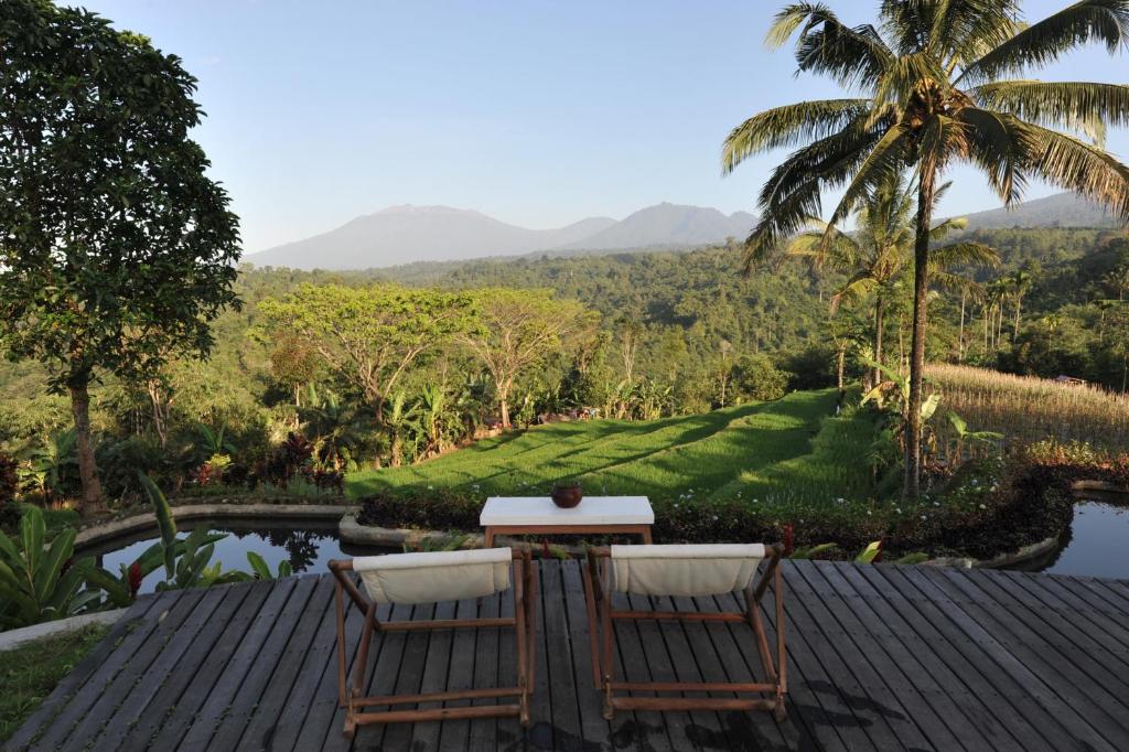 Ijen Resort and Villas is set amid rice terraces and tropical gardens in Banyuwangi, offering panoramic views of the Ijen Plateau and its surrounding volcanoes. The property features spacious villas and rooms with traditional bamboo and teak accents, private terraces, and open-air bathrooms. Facilities include an infinity pool overlooking the valley, a restaurant serving Indonesian and international dishes, and a bar with sunset views.
