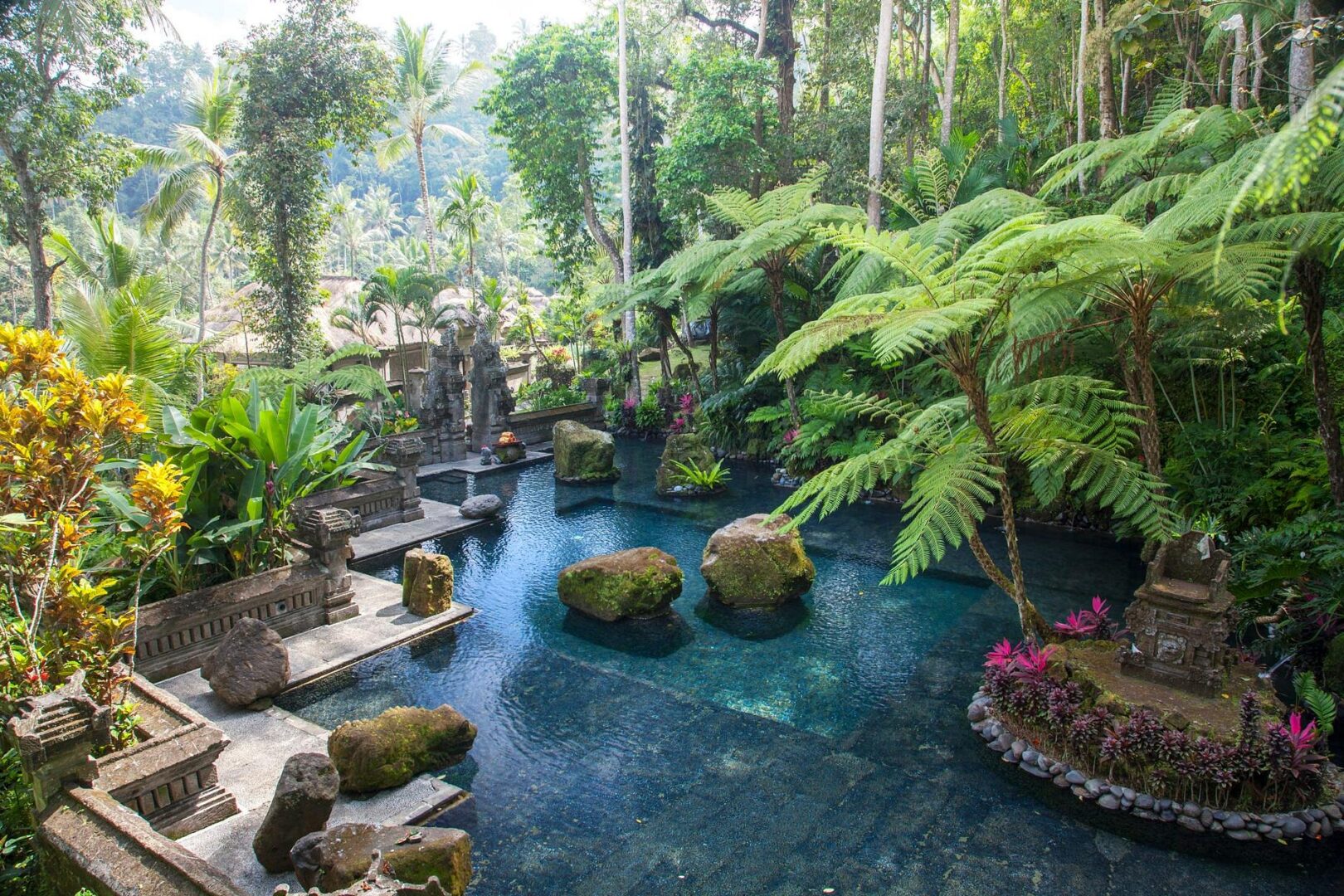 Carved into the lush Ayung River valley, Royal Pita Maha is a family-owned resort created by Ubud’s royal family to showcase Balinese art, architecture, and hospitality. Private villas cascade down the hillside, each with its own pool, spacious living areas, and traditional décor featuring carved wood and stone. The resort’s riverside setting includes natural spring-fed pools, a holistic spa, and restaurants highlighting Balinese and international cuisine.