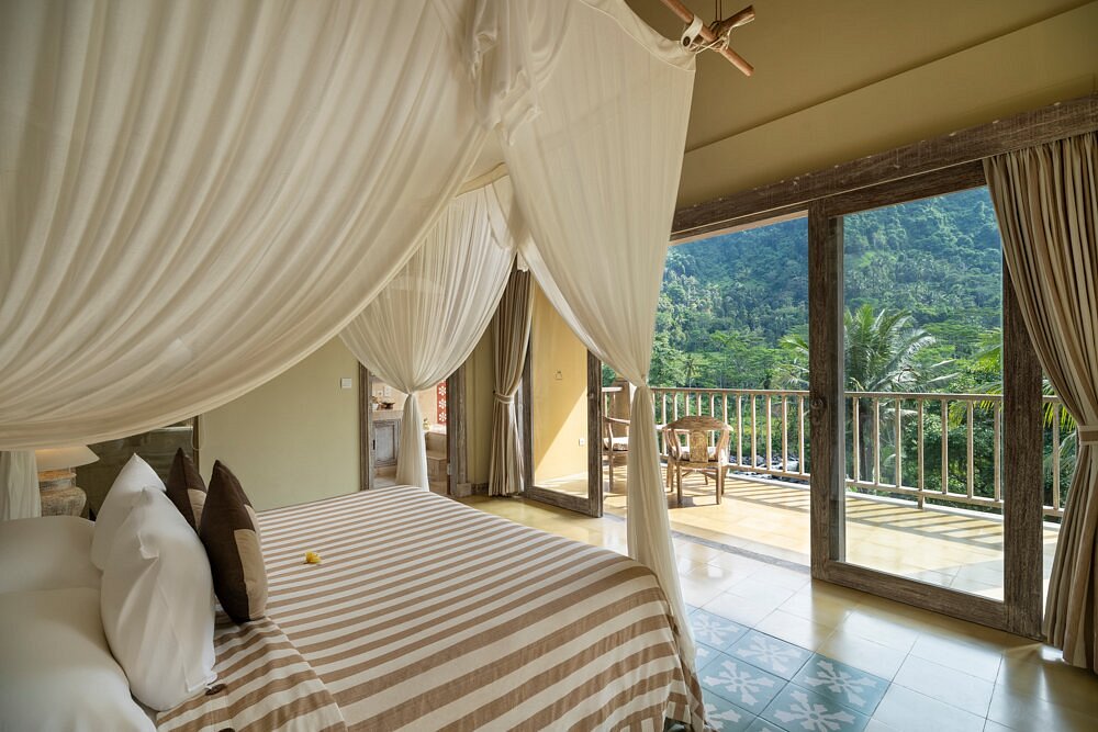 Wapa di Ume Sidemen is a tranquil hillside retreat overlooking rice terraces and the sacred Mount Agung in eastern Bali. The resort features spacious villas and suites with private plunge pools, outdoor bathtubs, and natural stone finishes. Facilities include a two-tier infinity pool, a riverside spa, a yoga pavilion, and a restaurant serving Balinese and international cuisine. The property’s design emphasizes traditional Balinese craftsmanship and offers sweeping views of the surrounding valley and villages.