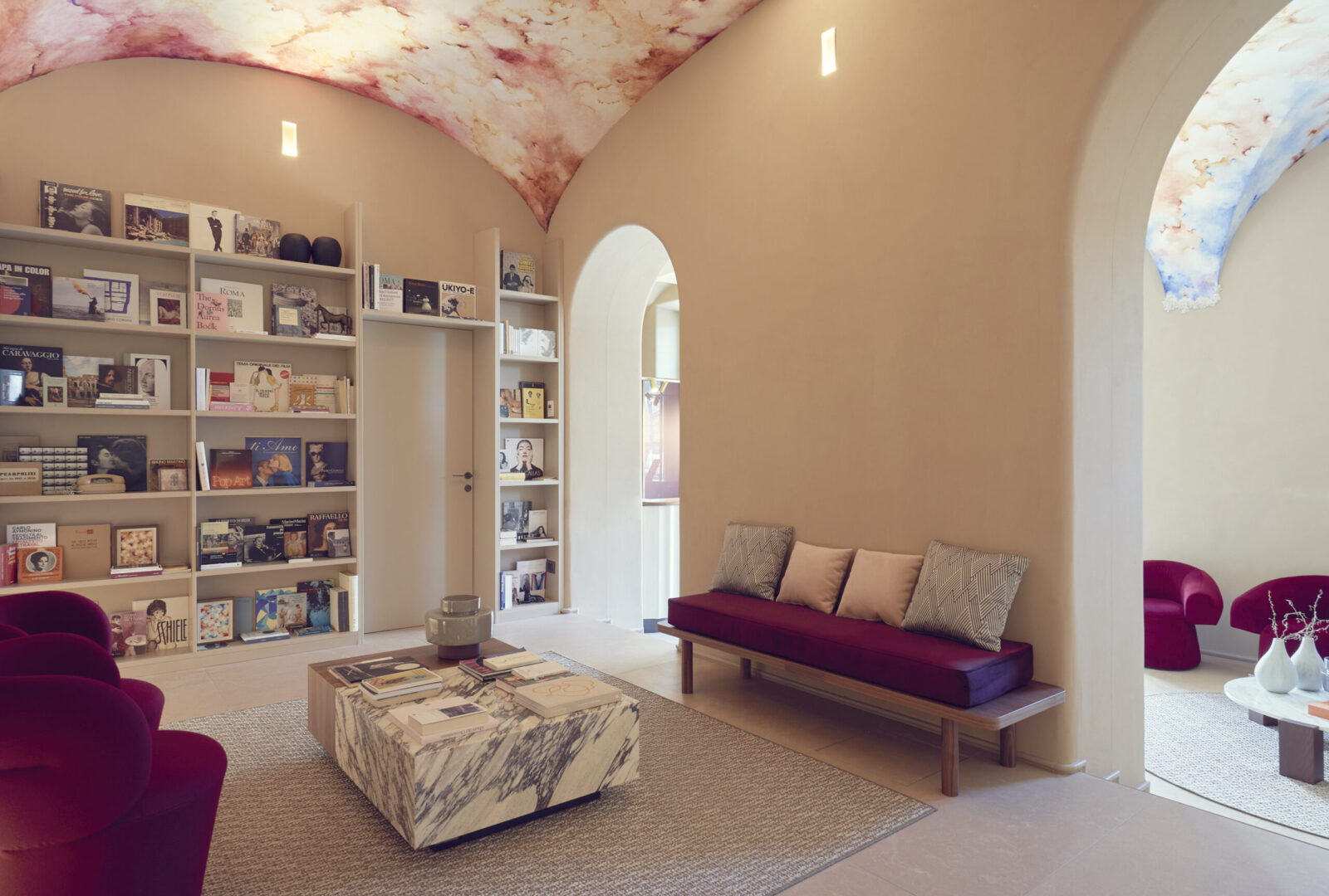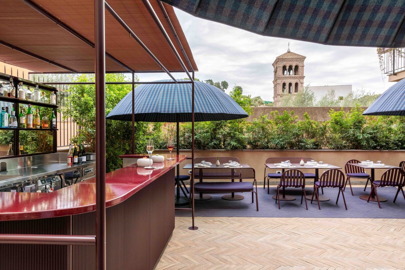 Palazzo Velabro is a boutique hotel set in a historic building in the heart of Rome. The property combines contemporary design with its historic setting, featuring modern interiors, curated artwork, and windows in the rooms that frame views of ancient Roman landmarks. Facilities include a restaurant serving Italian cuisine, a bar, a shady terrace overlooking the Fori Imperiali, an in-house cinema, and a gym.