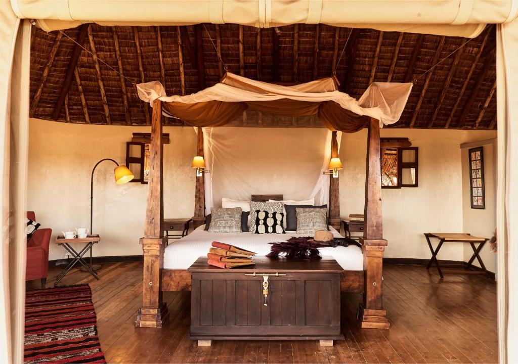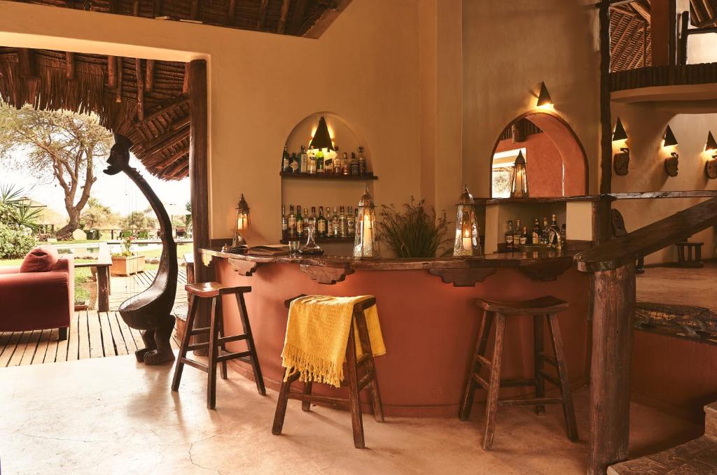 Tawi Lodge is a boutique eco-lodge set on a private conservancy near Amboseli National Park, with uninterrupted views of Mount Kilimanjaro. The property features thatched cottages with stone fireplaces, freestanding tubs, outdoor showers, and private verandas facing a busy waterhole. Facilities include a swimming pool shaded by acacia trees, a spa offering massage treatments, and a dining area serving farm-to-table cuisine. Built with sustainable materials and powered partly by solar, the lodge maintains a strong focus on conservation and community partnerships.