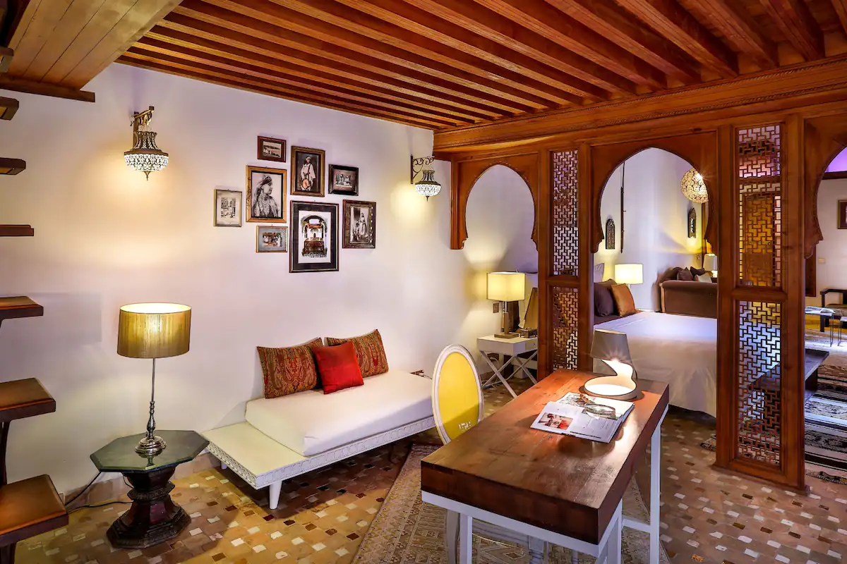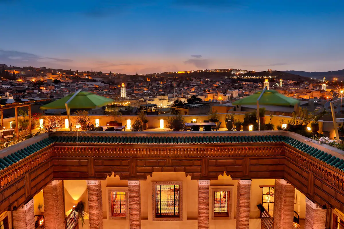 This beautifully restored boutique riad is located in the Andalous Quarter of the Fez Medina. Comprising just seven spacious guest suites situated around a traditional courtyard, each room has its own unique design that combines modern touches with traditional charm. Lavish common areas and a rooftop bar with panoramic views offer plenty of space to relax and enjoy your time here.