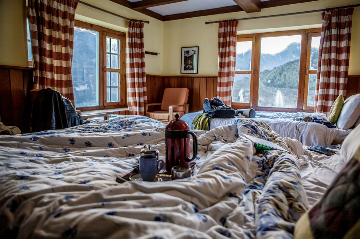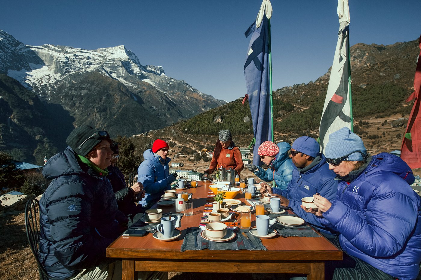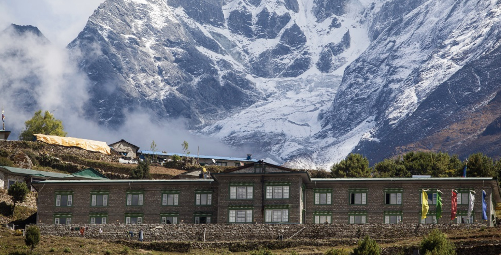 Namche Lodge sits on the upper slopes of Namche, the Sherpa capital, close to the Everest National Park headquarters and just a five-minute walk from the Sherpa Culture Museum. This comfortable, family friendly spot is the ideal acclimatization station, a basecamp for cultural experiences, and spa treatments. Namche Lodge also offers a revitalizing spa, providing a peaceful retreat amidst the stunning Himalayan views. Warm, dry, spacious rooms are softly furnished with Tibetan rugs and English linens, stunning views, thoughtful design touches, and an indulgent bathroom with hot running water. From the lodge’s high location, all rooms and the lounge offer clear views of the town’s iconic C-shaped layout, and the intensely close Kongde mountain across the valley.