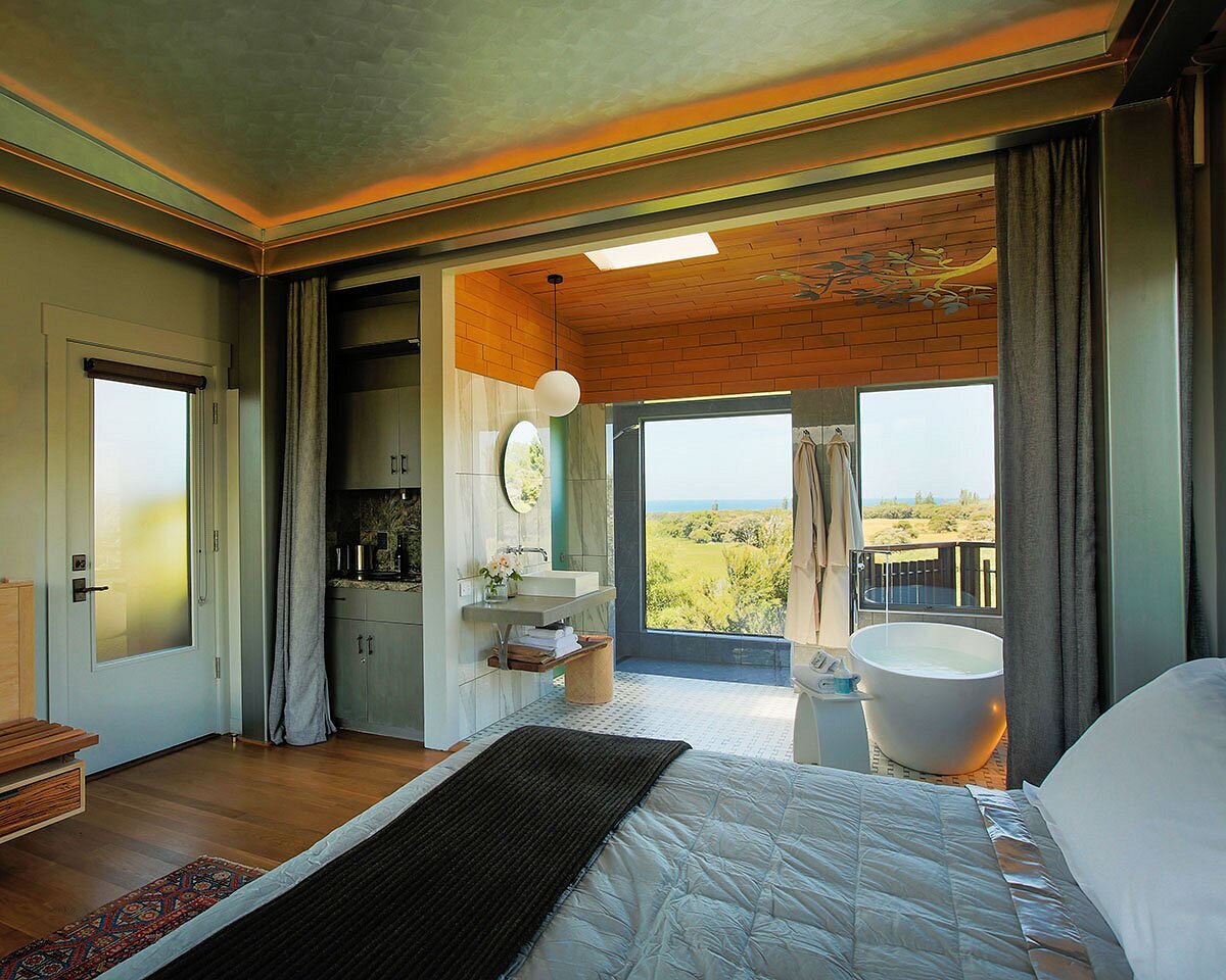 Hapuku Lodge & Tree Houses is a one-of-a-kind retreat set on a deer farm just north of Kaikōura, offering luxury accommodations surrounded by ocean and mountain views. Its signature tree houses - elevated 10 meters above the ground - feature sleek timber interiors, fireplaces, soaking tubs, and glass walls that immerse guests in the native canopy. The lodge also offers lodge suites and an Olive House apartment, all designed with a focus on comfort, craftsmanship, and connection to the landscape. The on-site restaurant serves seasonal dishes sourced largely from the lodge’s gardens and local producers. With its striking architecture and deep sense of place, Hapuku offers a unique blend of coastal seclusion and high-end design.