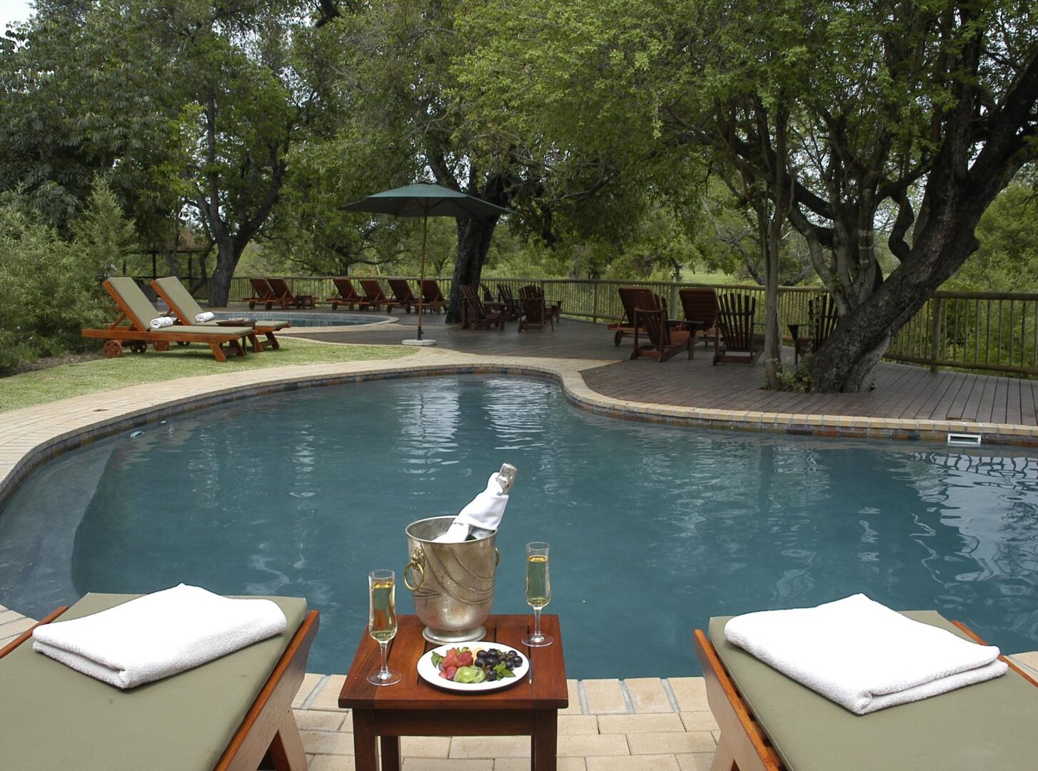 Deep in the bushveld overlooking a waterhole and an open plain, lies a lodge that pulses to the rhythm of Africa’s heartbeat. This is Bush Lodge, steeped in tradition, vibrant and warm, with a history spanning over 40 years, the lodge has earned a reputation of a “luxury home in the bush”, service excellence and effortless personal attention. The traditional safari style showcases a vibrant and eclectic mix of furnishings and décor garnered from all corners of the African continent. Bush Lodge has been sensitively designed to allow ample space to relax, unwind and savor the tranquility of the bush. The two swimming pools and large covered viewing decks overhanging the Msuthlu riverbed are an invitation to cool off in the filtered water or sit in comfort while spotting game at the well-utilized waterhole. An exquisitely furnished lounge, atrium and intimate bar area are perfect meeting places for friends old and new. As an extra indulgence, the Amani spa at Bush Lodge offers the ultimate African Spa experience.