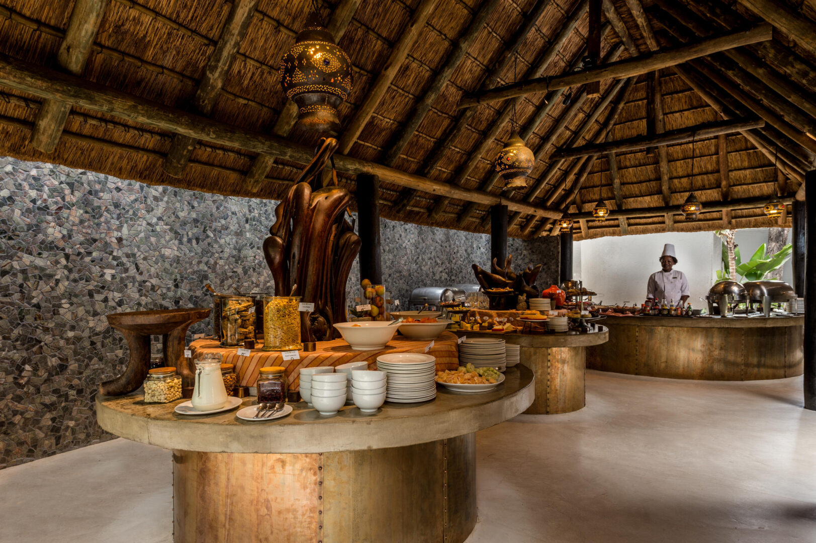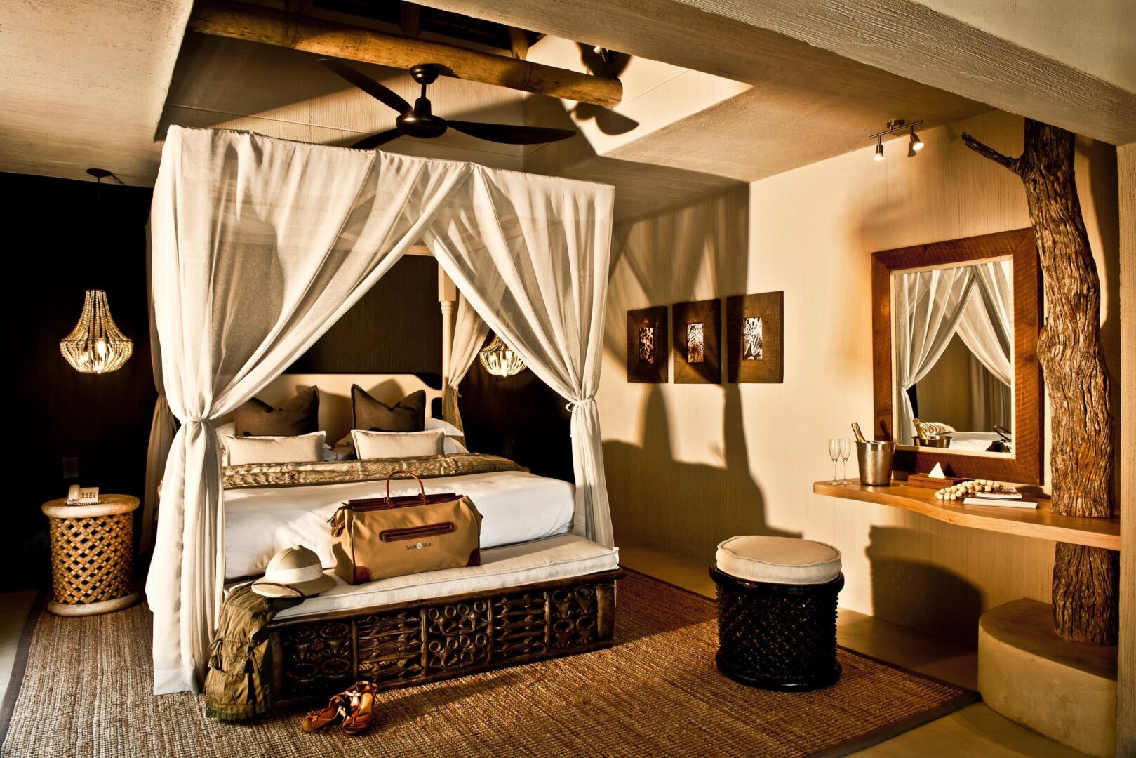 To maintain privacy and intimacy, the lodge has just 25 suites in total including 2 Luxury Villas and the Mandleve Presidential Suite. Two spacious Luxury Villas feature a master bedroom with en-suite bathroom, second en-suite bedroom, a private pool, library lounge and beautiful patio facing a waterhole. The suites are air-conditioned and feature sumptuous linen and classic leather and wood furnishings. The Mandleve Presidendial Suite features a private plunge pool and luxurious interiors with endless views of the bushveld. The suite is air-conditioned and has all the conveniences of a presidential suite with king-size bed, spacious bathroom and lounge, as well as mini bar, tea & coffee facilities and a Nespresso machine.