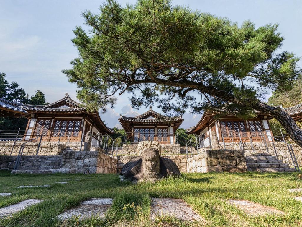 Rakkojae Andong Hahoe is a traditional Korean hanok stay located within the UNESCO-designated Hahoe Folk Village. Set in a restored 600-year-old aristocratic residence, the property offers a unique opportunity to experience Korea’s cultural heritage in an authentic setting. Guests sleep on heated ondol floors in rooms furnished with handcrafted decor and traditional architectural details. While the accommodations are simple, they include modern comforts like air conditioning and private bathrooms. Meals featuring local Andong cuisine are available on request, and the surrounding village provides a quiet, immersive backdrop for exploring Korean history and tradition.