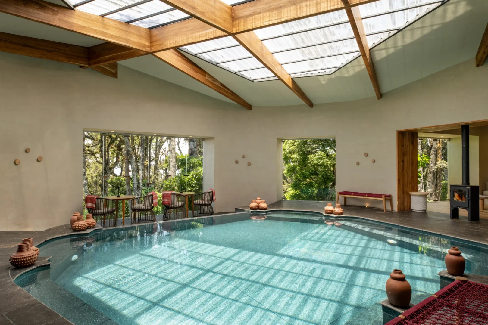 Lemala Osonjoi Lodge is a safari lodge set on the eastern rim of the Ngorongoro Crater, positioned for early access onto the crater floor. The lodge features spacious suites with picture windows, wood-burning fireplaces, and large ensuite bathrooms with soaking tubs and rain showers. Facilities include a main lodge with a lounge and bar area, a spa, an indoor heated swimming pool, a restaurant, and viewing deck with a communal fire pit.