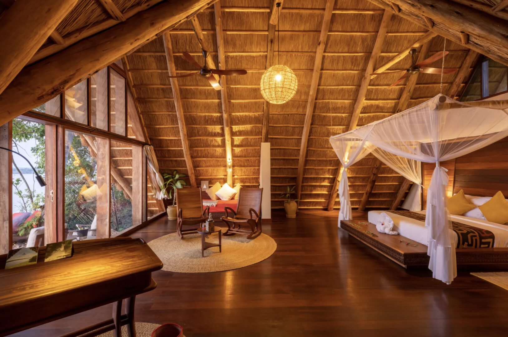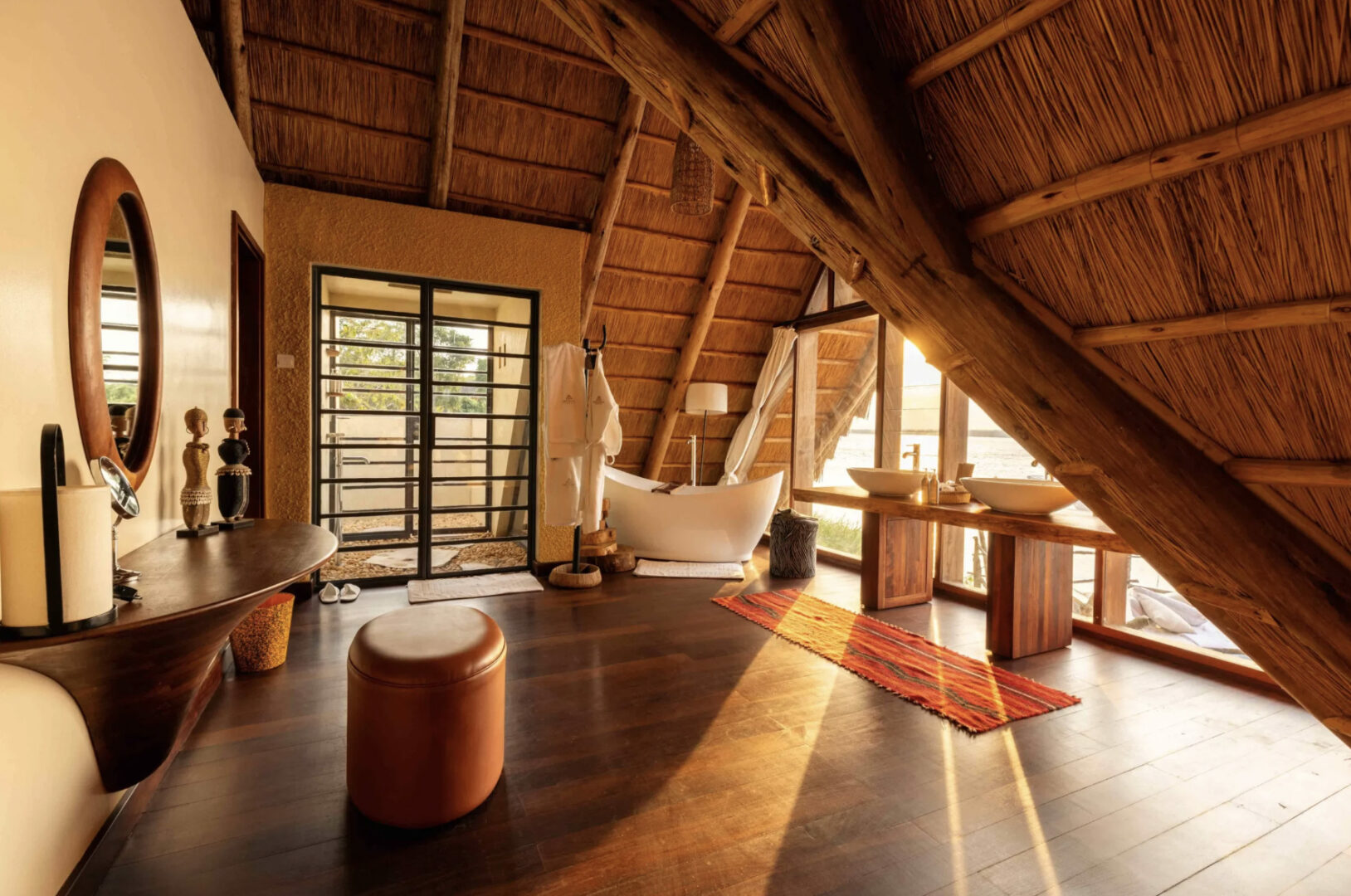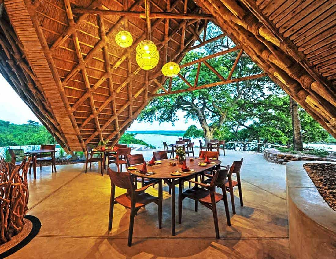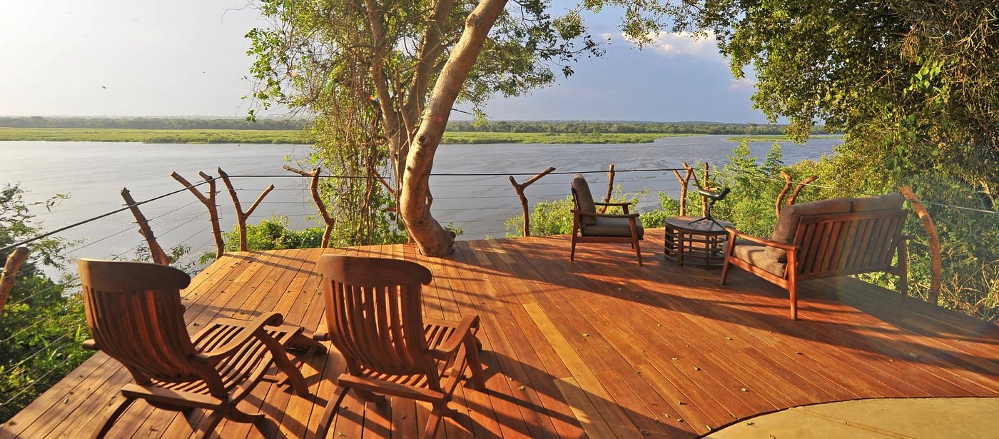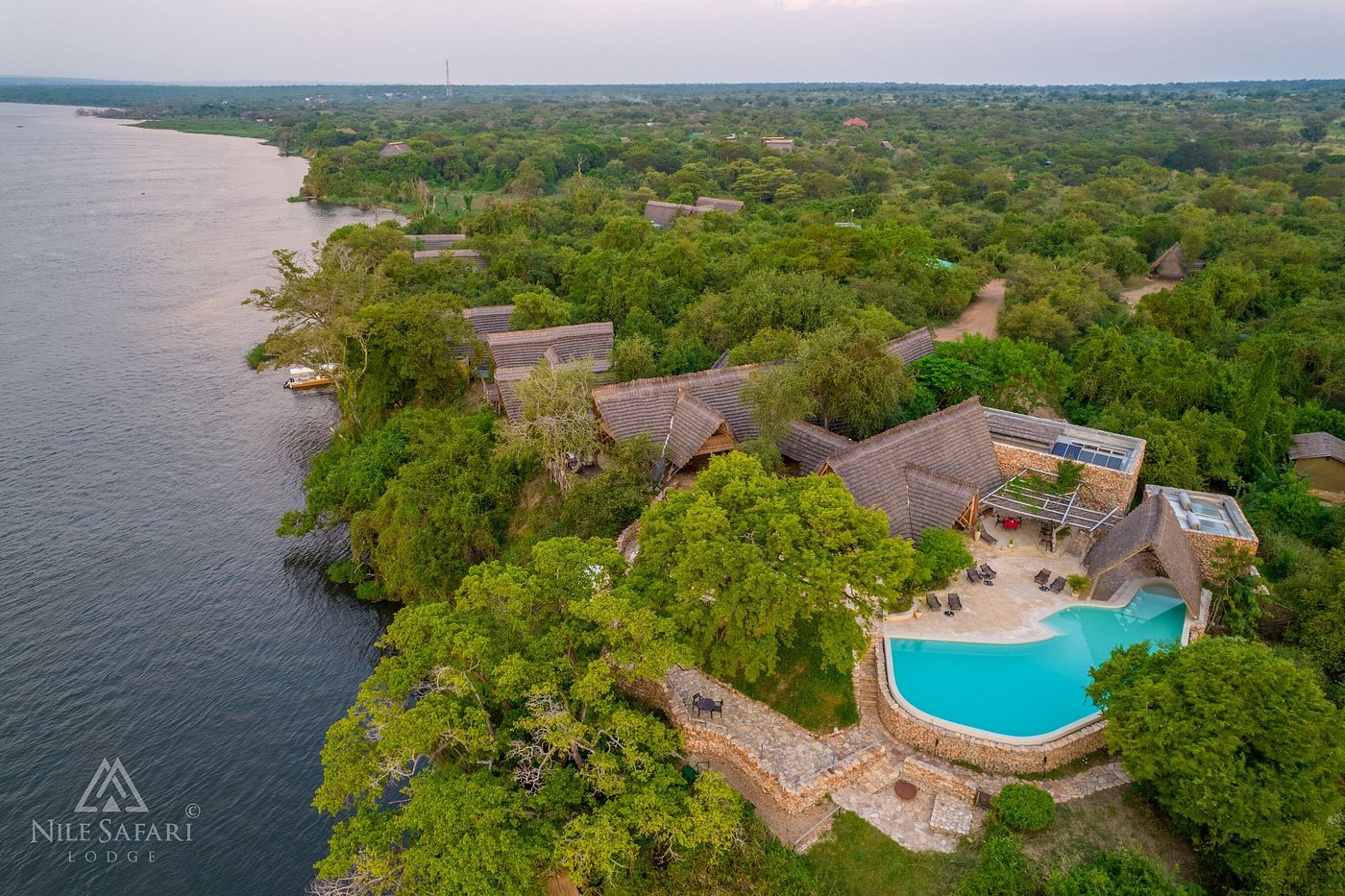 Nile Safari Lodge is a family-owned eco-friendly lodge located on the Nile River in Murchison Falls National Park. The lodge sits on 32 acres and provides accommodation in 8 luxurious "Bandas" (Villas). Each banda overlooks the Nile from their private verandas and large windows, letting in ample light and sweeping views. The lodge has an on-site restaurant serving a mix of Ugandan and continental cuisines, a lounge bar, an infinity pool, a floating massage deck, evening campfires, and star gazing beds.