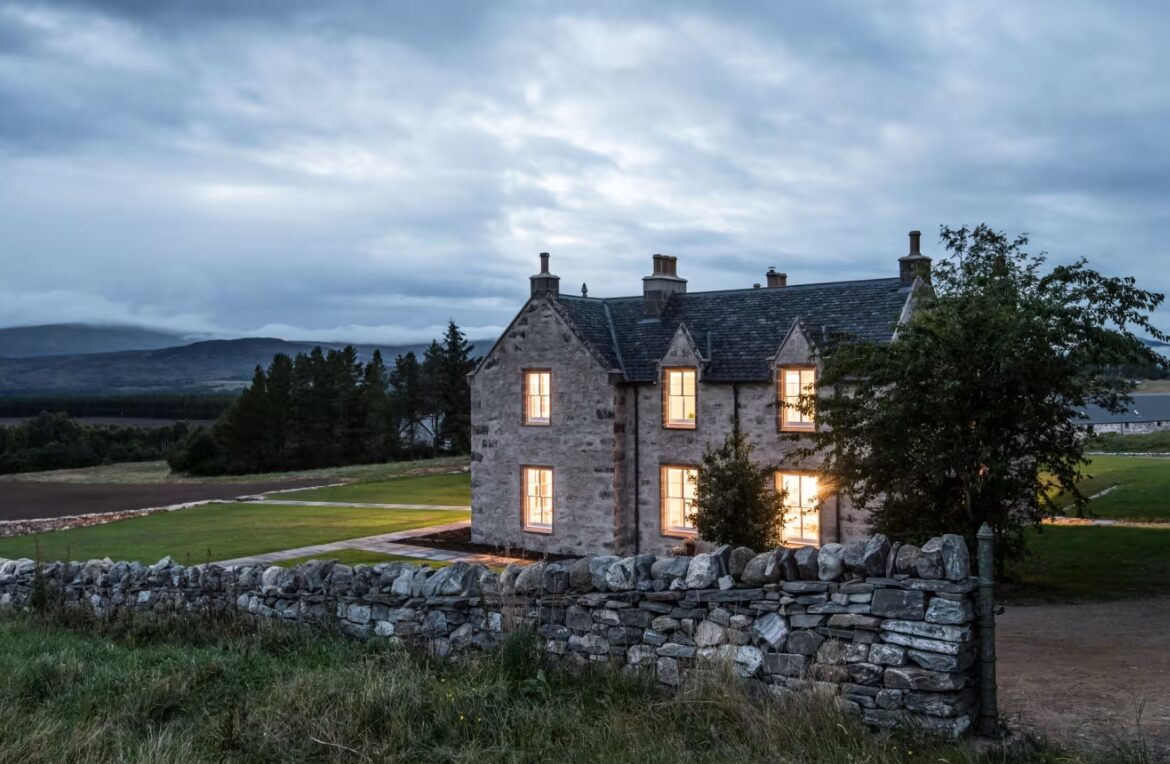 Killiehuntly Farmhouse is a beautifully restored 19th-century estate in the Cairngorms National Park, offering a blend of Scandinavian design and Highland tradition. The property features four individually styled rooms with natural fabrics, antique furnishings, and views over the surrounding hills. Guests share communal spaces including a cozy kitchen, dining room, and sitting room with a fireplace. Meals are prepared using produce from the farm and local suppliers. With its minimalist aesthetic and tranquil rural setting, Killiehuntly embodies modern Scottish simplicity and comfort.