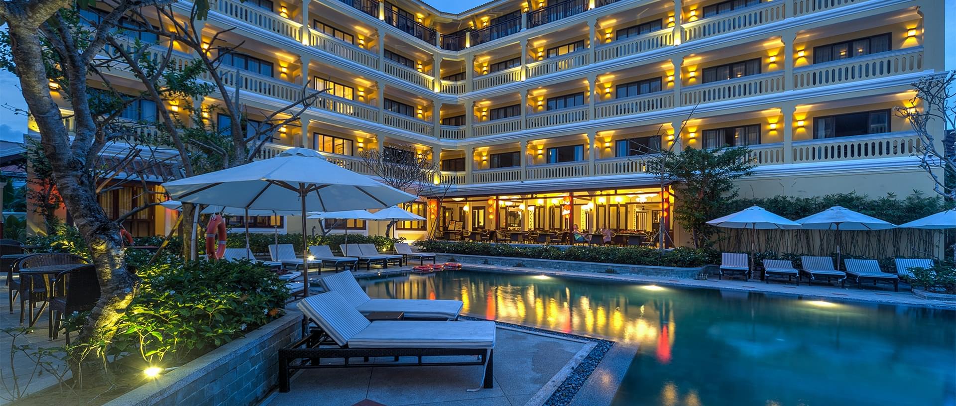 Hoi An Central features colonial architecture, together with a contemporary update of traditional designs. Come and let yourself connect with the soul of modern Hoi An. Decked out with modern facilities and amenities, all 108 guest rooms await you with the best experience of staying in this ancient town. Immerse yourself in one of the most unique boutique hotels, with contemporary surroundings and personalized service. The stylish restaurant features Vietnamese and Western cuisine complemented by a sunken bar and outdoor pool terrace. Located on the ground floor, the bar offers an effortless setting for relaxing and savoring your time beside the pool. The state-of-the-art relaxation and fitness center offers you various services. Enjoy the outdoor pool, sweat it out in the sauna, or pamper yourself with a stimulating full body massage in Vietnamese or Thai style.