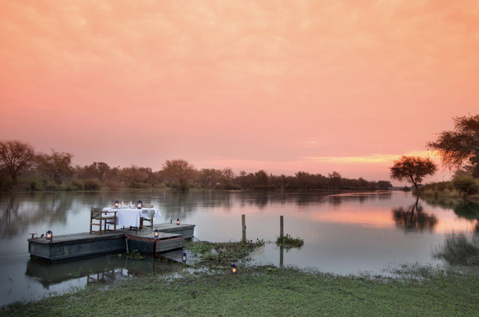 Elevated on a riverbank, overlooking the expansive Zambezi River in perpetual motion is Amanzi luxury safari camp, an intimate and enthralling Zambian establishment. The luxury safari lodge is carved into the landscape, with the persistent flow of the river a mesmerizing focal point. Here, wildlife is left to roam freely across the floodplains; elephants silhouetted against the shimmering sun pass regularly pass by, ignoring the grunts of hippo and shouts of the bird life as it meanders across the landscape.
