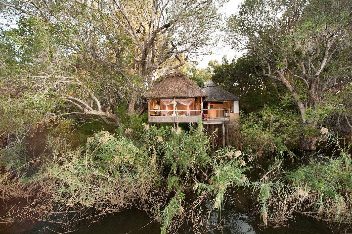 Nestled along the Zambezi River, just outside of Livingstone, Zambia, Chundukwa River Lodge is a thoughtfully designed space for you to align with nature and immerse yourself in a more meaningful travel experience. The lodge is on an idyllic horse ranch situated just 15 miles from Victoria Falls - close enough for guests to explore all that Vic Falls has to offer, yet far enough to offer a sanctuary for nature-lovers and those seeking a quiet place to unwind and reconnect - river watch, horse ride, practice yoga, or enjoy the ample birdlife. The lodge offers eco-luxe chalets and cottages overlooking the Zambezi, and has an on-site restaurant, pool, bar, and lounge area.