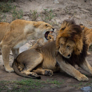 Top Left: Chameleon shot by Regina Huerter (1st place) – Bottom: Lions shot by Jenny Scharff (2nd place) – Top Right: Baobabs shot by John Kardys