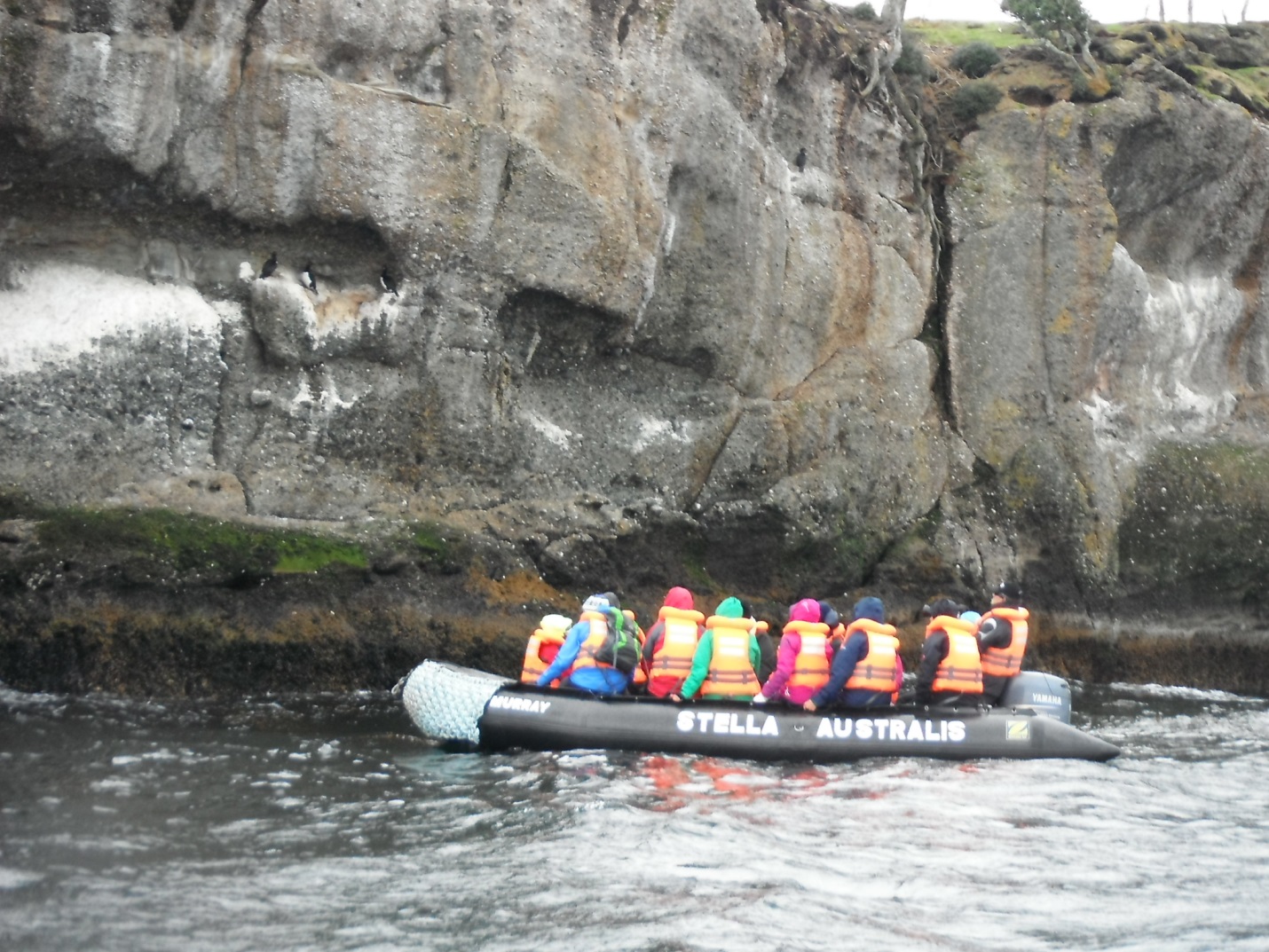 We knew we were in for a treat at the Tucker Islets when, as we arrived, three Austral Dolphins surfaced and began to swim alongside us in a playful manner reminiscent of the Galapagos’ curious sea lions. On our way to visit a Magellanic Penguin colony, our naturalist guide let us know we’d first be paying a visit to some Rock Cormorants. As the zodiac rounded a bend we saw a group of these red-faced shags, also known as Magellanic Cormorants, perched on the face of a cliff just above us, using their specially-adapted tails to balance there delicately.