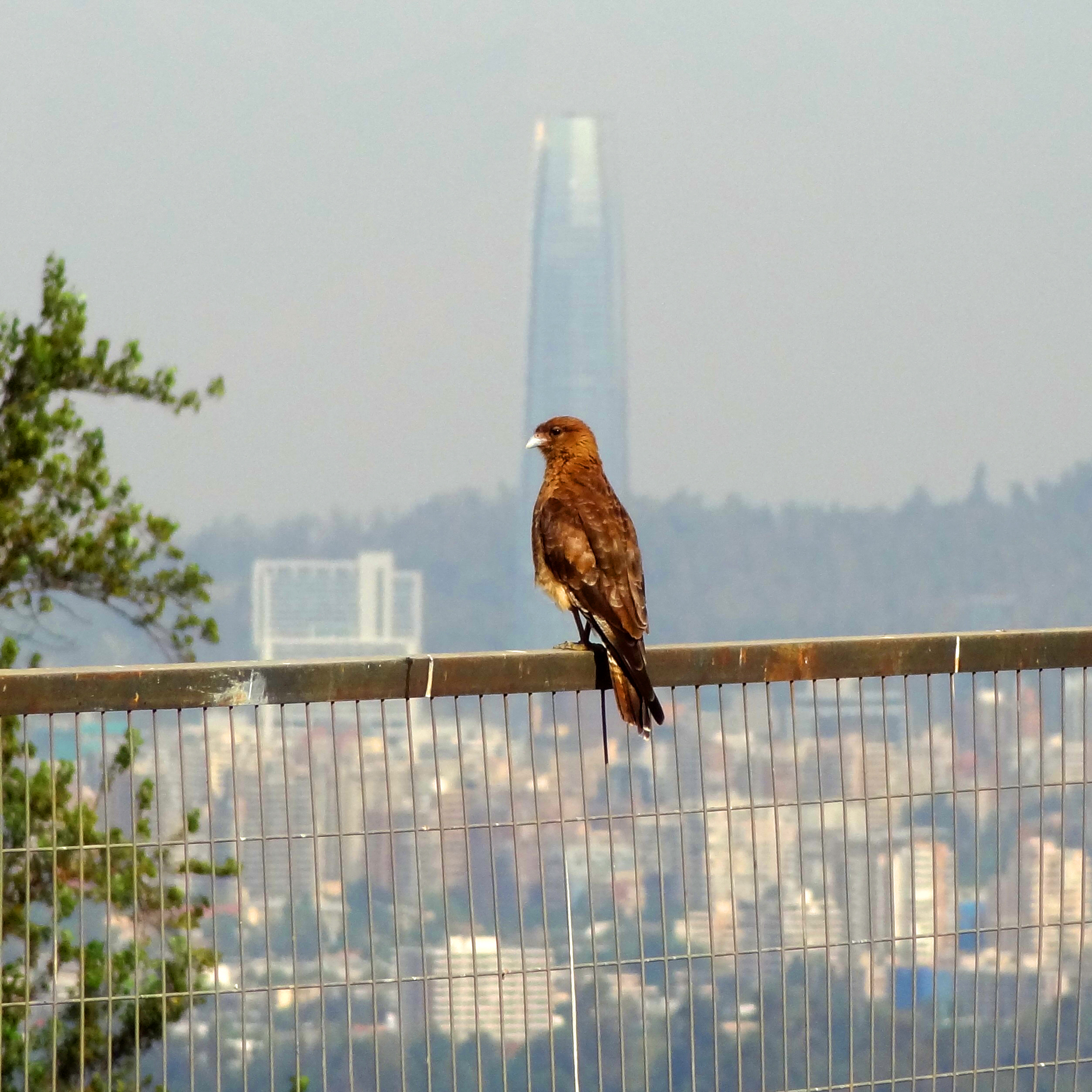 Chimango Caracara in front of Santiago’s iconic Costanera Tower