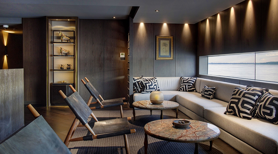 The Aqua Nera was designed for Aqua Expeditions by award-winning architect Noor Design who drew inspiration from the peaceful blackwater lagoons and tributaries of the Mirrored Forest in the Peruvian Amazon. The Aqua Nera offers luxury cruise expeditions on the Amazon River. This river cruise ship has 20 spacious, air-conditioned suites with floor-to-ceiling windows, accommodating a maximum of 40 passengers. Amenities include an indoor lounge, outdoor lounge with pool, fitness center, observation deck, and a dining area featuring gourmet Peruvian cuisine. There are four launch boats for shore excursions, plus kayaks and all-terrain bikes on some itineraries.