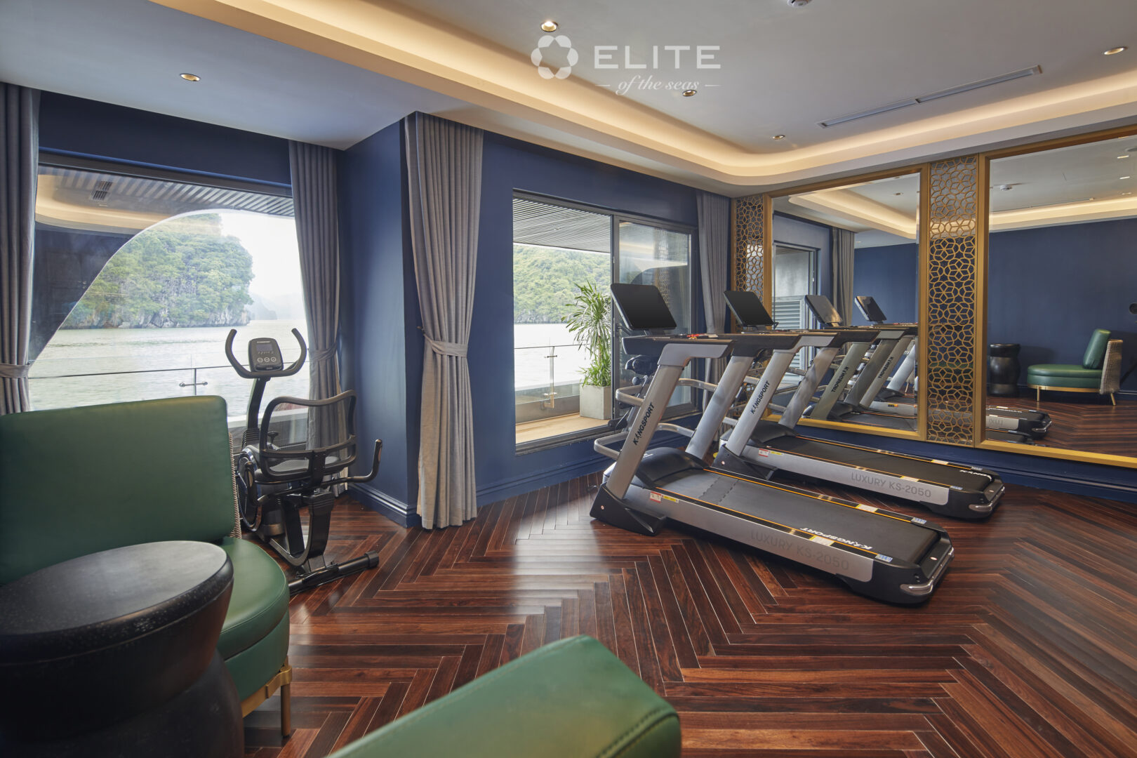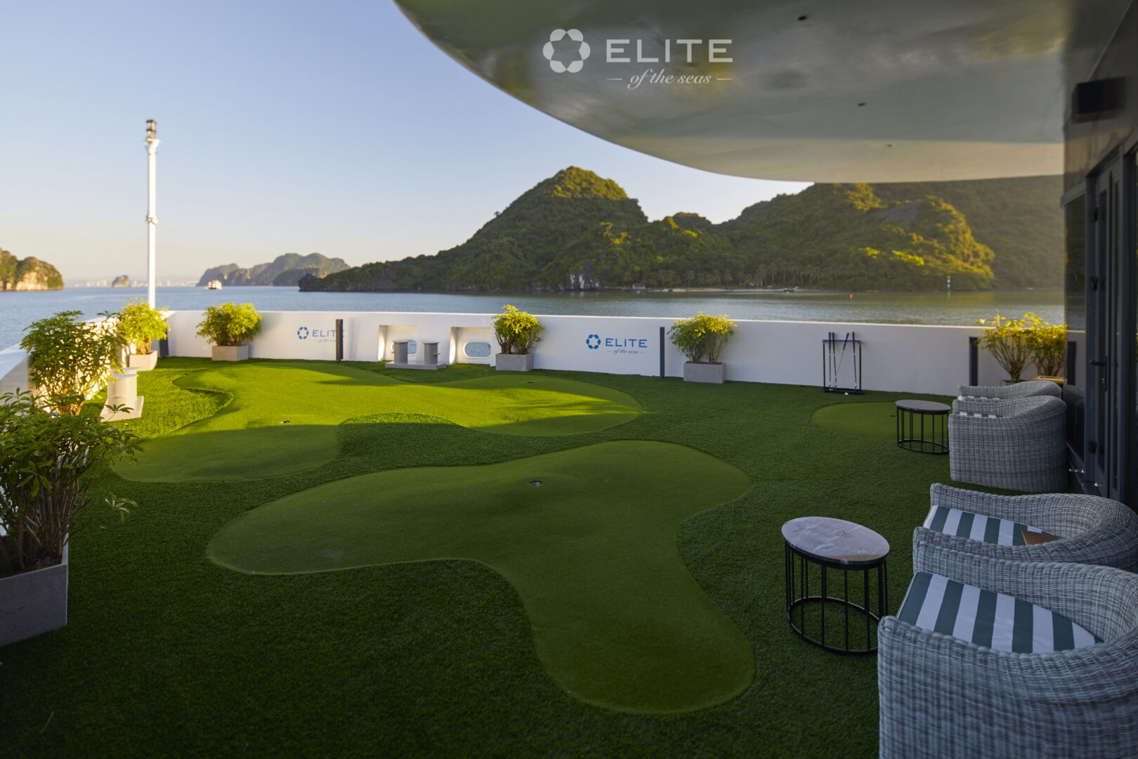 Elite of the Seas is a contemporary luxury yacht in Vietnam's Halong and Lan Ha Bay. With chic design and interiors, its many features include a rooftop infinity pool, a spa and sauna, a panoramic bar and restaurant, a wine cellar, a well-equipped gym, and even a mini golf course. Elite of the Seas has 35 elegant and spacious rooms, all offering views over the sparkling bays. Daily activities include kayaking, cooking demonstrations, Tai Chi, and more.