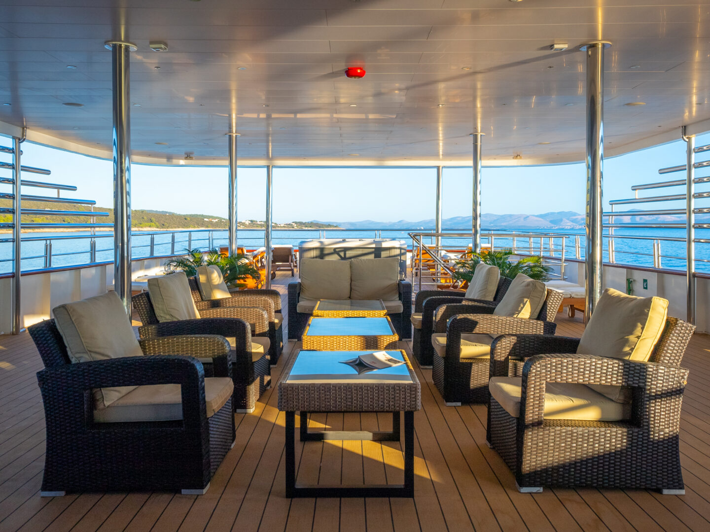 Cruise the Adriatic Sea in comfort on a small modern ship that spans 160 feet and holds only 19 cabins. Passengers can enjoy the comfort of air-conditioned cabins, with options for standard cabins featuring portholes or main deck cabins with windows. The ship offers leisure amenities including a swimming platform, a sun deck featuring a jacuzzi, as well as a cozy salon and bar for social gatherings.