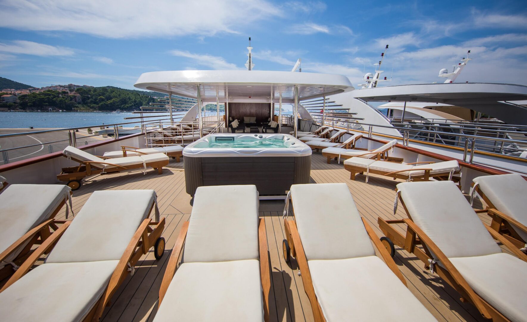 Type of vessel: Luxury motor ship Port of Embarkation: Dubrovnik Length: 49m Beam: 8.6m Capacity: 40 passengers and 9 crew Engine: 2x 550HP diesel Cruising Speed: 8.5 knots