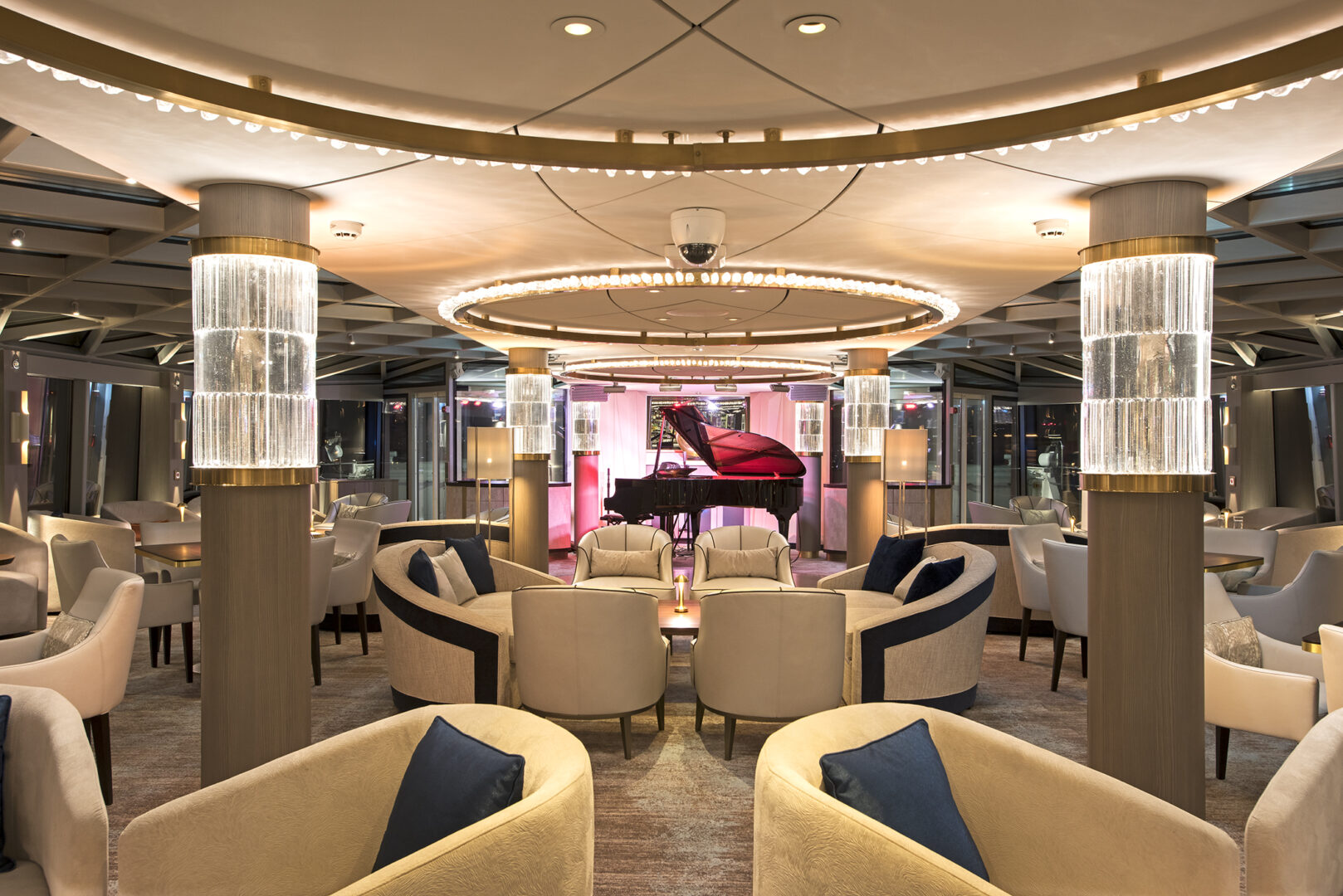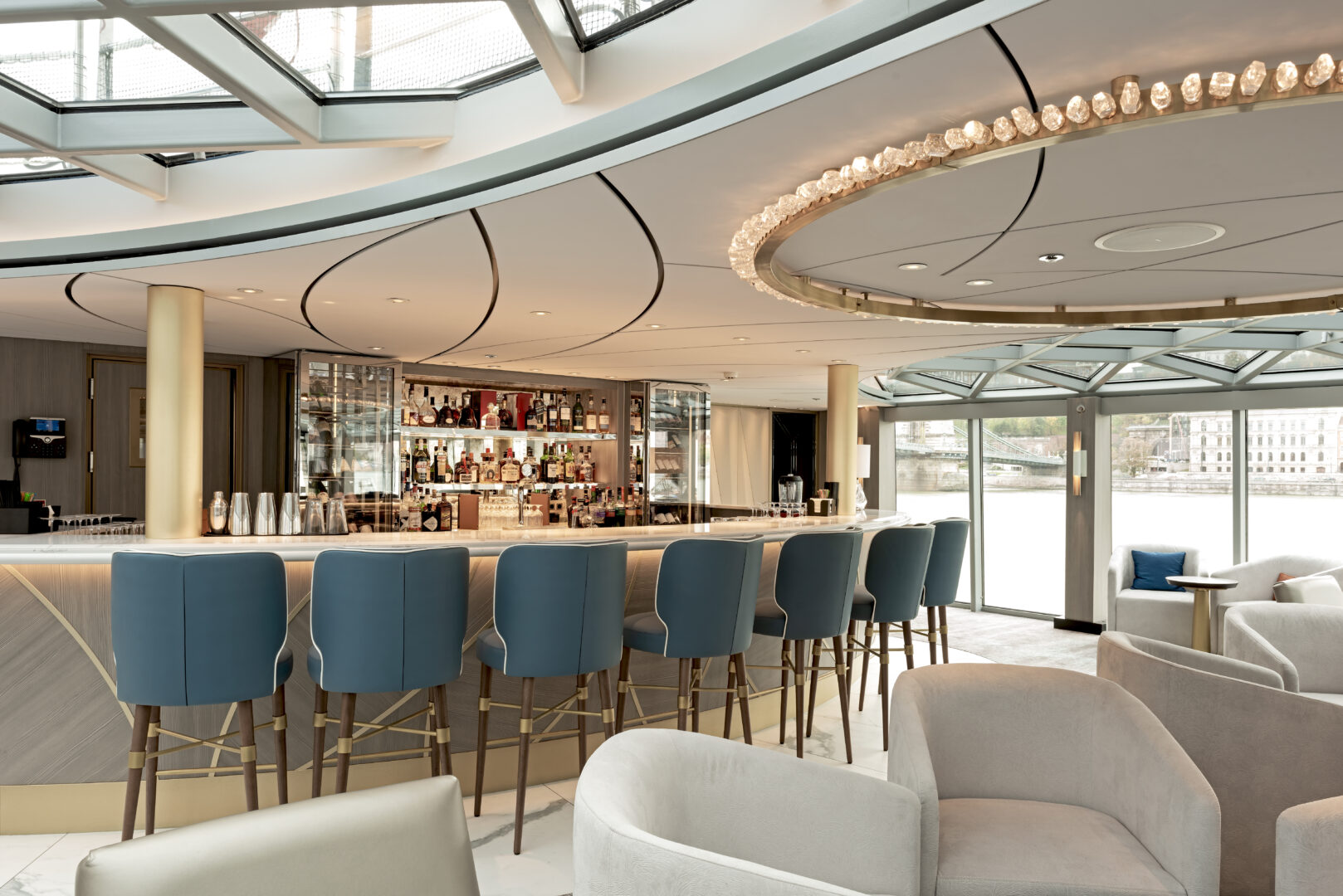 The Riverside Ravel is a luxury riverboat in France, cruising on the Rhône and Saône rivers. This chic boat offers luxe suites with floor-to-ceiling windows, a restaurant serving 5-star French cuisine relating to the regions it sails through, ample lounge areas to view the passing riverbanks from, an indoor swimming pool, and a state-of-the-art spa and fitness center.